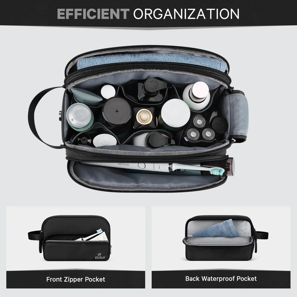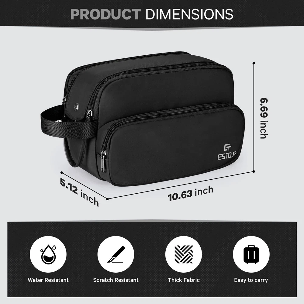 Estour Toiletry Bag for Men, Travel Toiletry Bag Travel Essentials, Dopp Kit Water-resistant Shaving Bag,Bathroom Bag Toiletries Organizer,Classic Black(Polyster) Excellent quality: Our toiletry bag for men is made of water-resistant material, ensuring easy cleaning and protection against splashed water. It perfect for travel and daily use. Large Capacity: With a spacious main compartment and elastic straps, our travel toiletry bag for men securely holds bottles upright, preventing spills during transportation. The multiple pockets inside keep all your shaving supplies and toiletries organized. Dual Zippers Designed: With double zippered openings, our mens toiletry travel bag enables convenient and quick access to the main compartment. Wide opening design makes it effortless to get your items. Wet-dry separation: Our men toiletry bag features waterproof pocket that effectively separates wet and dry items. Versatility: Our versatile dopp kit is suitable for home, business trip and travel use. Its unique design allows you to have a toiletry bag, shaving bag, and cosmetic bag all in one, making it the perfect travel essential. SHIPPING Domestic Buyers - We have confidence in our products, but if you are not fully satisfied please contact us within 30 days of purchase and you will get full refund. - We ship within 3 business days of payment, usually sooner - We offer FREE shipping on all orders! - We only ship to the lower 48 states, no APO/FPO addresses or PO Boxes allowed International buyers – please note: Import duties, taxes, and charges aren't included in the item price or postage cost. These charges are the buyer's responsibility. - Please check with your country's customs office to determine what these additional costs will be prior to bidding or buying. * Order Cancellation Policy ** You can return a product for up to 30 days from the date you purchased it. 1. The seller reserves the right to cancel the special case only due to eBay cancellation fee. 2. The decision of seller is the final. 3. The seller will respond to the cancellation request within 2 business days. Please wait for the result of cancellation. 4. In case the cancellation is not completed by some reasons, the buyer can follow the options below to get the refund. 4.1 The buyer can reject the item when it arrives. 4.2 The buyer can send the item back to the seller within 30 days If the buyer receives item (USA Shipment ONLY). The seller will provide the FREE return label to the buyer when the buyer opens " Return Item" case on eBay by using the reason as "Change my mind" ONLY. 5. When buyer has placed the order. The order will be processed and completed by automatic warehouse system within 5 minutes. In case that buyer sends the cancellation request after 5 minutes of placing the order, the request will be rejected. **Sending direct message to cancel the order is not allowed for every case.* Return Policy For the return case - If buyer would like to return the items for refund or replacement, please CONTACT SELLER to receive the free return label from seller. The refund or replacement will be processed with the tracking number of return label which is provided by seller only. The other ways of return which are not approved by seller will not be processed for the refund or replacement.