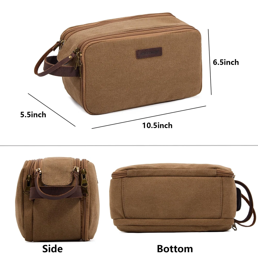 DENGFENGZHE Toiletry Bag for Men,Canvas Travel Toiletry Organizer Dopp Kit Large Capacity Water Resistant Shaving Bag for Toiletries Accessories (Brown, Medium) LARGE CAPACITY and MULTI-FUNCTIONAL POCKETS: Travel toiletry bag Medium Size: 10.5x5.5x6.5 inches; Large Size:12x6x7 inches. 1 Main compartment with 4 open side pockets, which is roomy to fit facial cleanser, electric shaver, travel shampoo, makeup and other toiletries. 1 side zipper waterproof pocket, effectively achieving wet dry separation; and the other side zipper pocket with mesh zipper pocket and elastic band, convenient for you to sort and access vacation essentials. QUALITY MATERIAL: Our travel makeup bag made of comfortable canvas, which is long-lasting use; come with full grain leather handle and sturdy hardware. It is a great toiletry bag or cosmetic organizer, make your trip more relaxed and en-joyful. STYLISH and RETRO DESIGN: This men's/women's toiletry bag with simple color matching, offer different colors, grand, fashionable, and high-end, perfect for carrying when going out. It has a side handle that can be easily hung in the bathroom or closet. Easily placed in your luggage, very convenient during your travel. PERFECT GIFT: This travel bags also cosmetic bag, it is an excellent travel accessory for men and women. The toiletry bag is easy to pack and fits well in backpacks, perfect for business trips, travel, gym, camping, and family outings. It is a great gift for men, women, father, uncle, husband, friends, and those who love to travel. 100% SATISFACTION: We will make sure that every customer gets a great buying experience. If you find any issue with this travel toiletry bag, please contact us immediately, we will give you a satisfactory solution. SHIPPING Domestic Buyers - We have confidence in our products, but if you are not fully satisfied please contact us within 30 days of purchase and you will get full refund. - We ship within 3 business days of payment, usually sooner - We offer FREE shipping on all orders! - We only ship to the lower 48 states, no APO/FPO addresses or PO Boxes allowed International buyers – please note: Import duties, taxes, and charges aren't included in the item price or postage cost. These charges are the buyer's responsibility. - Please check with your country's customs office to determine what these additional costs will be prior to bidding or buying. * Order Cancellation Policy ** You can return a product for up to 30 days from the date you purchased it. 1. The seller reserves the right to cancel the special case only due to eBay cancellation fee. 2. The decision of seller is the final. 3. The seller will respond to the cancellation request within 2 business days. Please wait for the result of cancellation. 4. In case the cancellation is not completed by some reasons, the buyer can follow the options below to get the refund. 4.1 The buyer can reject the item when it arrives. 4.2 The buyer can send the item back to the seller within 30 days If the buyer receives item (USA Shipment ONLY). The seller will provide the FREE return label to the buyer when the buyer opens " Return Item" case on eBay by using the reason as "Change my mind" ONLY. 5. When buyer has placed the order. The order will be processed and completed by automatic warehouse system within 5 minutes. In case that buyer sends the cancellation request after 5 minutes of placing the order, the request will be rejected. **Sending direct message to cancel the order is not allowed for every case.* Return Policy For the return case - If buyer would like to return the items for refund or replacement, please CONTACT SELLER to receive the free return label from seller. The refund or replacement will be processed with the tracking number of return label which is provided by seller only. The other ways of return which are not approved by seller will not be processed for the refund or replacement.