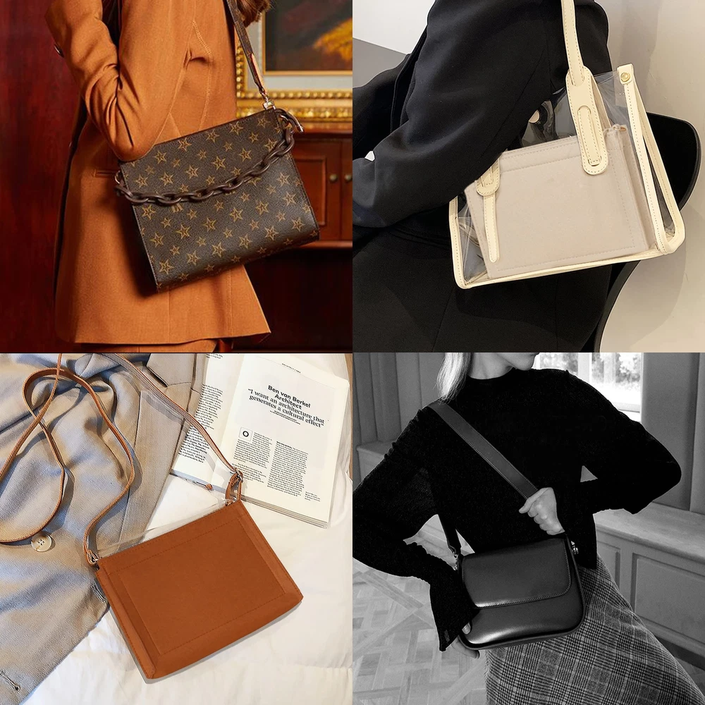 【 LIGHTWEIGHT & DURABLE】The Toiletry Pouch Handbag inserts organizer is made of felt which is exquisitely made,good sewing, pliable and sturdy. Lightweight handbag organizer does not increase the weight of the bag. 【PRACTICAL DESIGN】Felt purse organizer with D-ring buckles design make your toiletry pouch as a shoulder bag crossbody bag.And the extra key chain is help find the keys easily.Accompanied with a gold zipper pocket to keep your valuables from being stolen. 【SIZE OF FELT BAG ORGANIZER】Small Size-6.6 (L) x 4.7 (H) x 1.9 (D)inches fits for Toiletry pouch 19; Large Size-9 (L) x 5.9 (H) x 1.9 (D) inches fits for Toiletry pouch 26. Portable and Compact Purse is also perfectly for other brand bag organizer. 【KEEP TIDY AND SHAPE】This Toiletry Pouch Handbag inserts organizer keeps women's handbag Shape.Easy to switch purses and bags throughout the day without having to reorganize and the fear of overturning your items. 【FUNCTION】Can be a women makeup storage bag, jewelry bag organizer,crossbody bag organizer ect. Plenty of pockets is enough to hold your items in place,such as cosmetics,cards, mobile phones,keys and pocketbook organizer, much more well-organized.