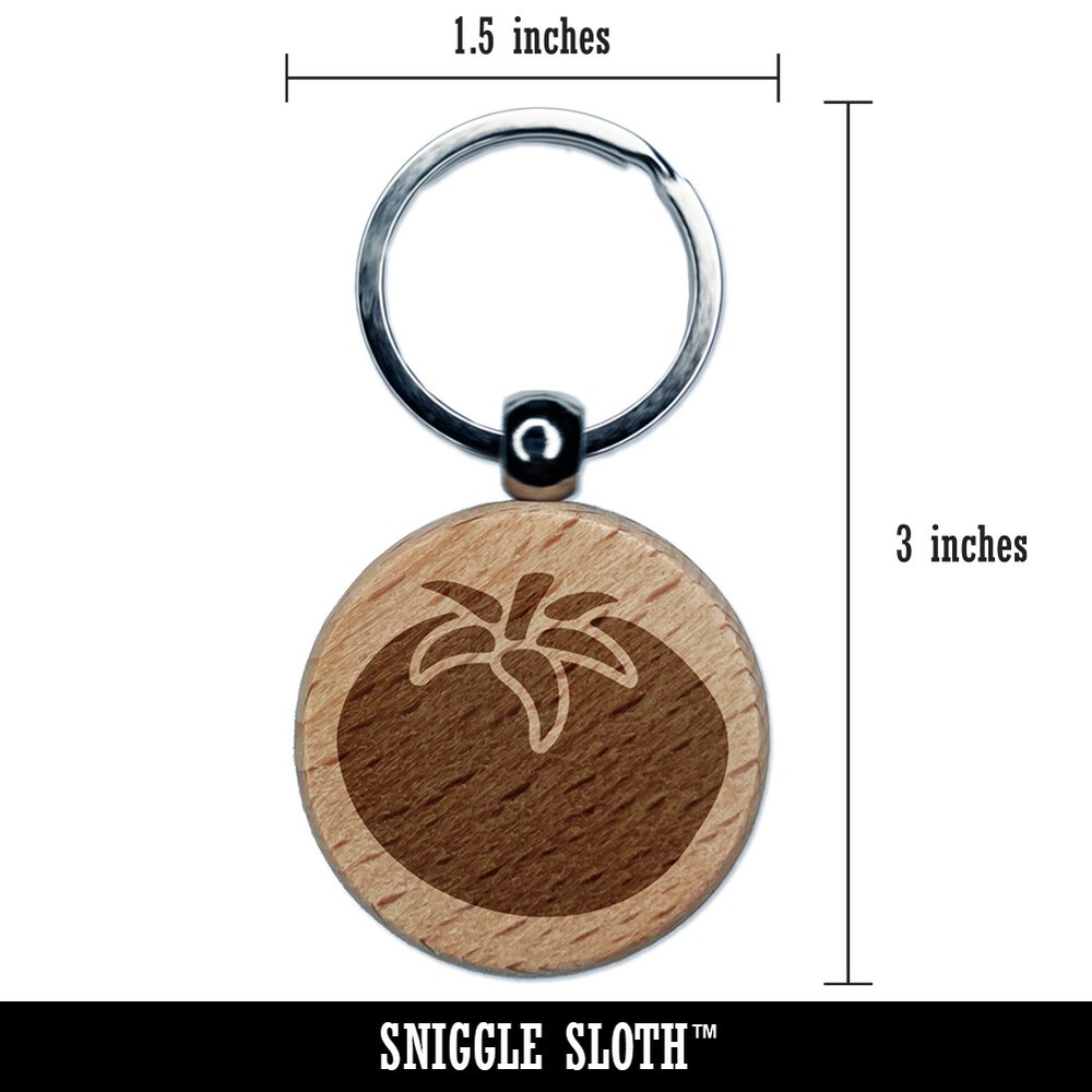 Tomato Garden Fruit Engraved Wooden Round Keychain Charm Tag