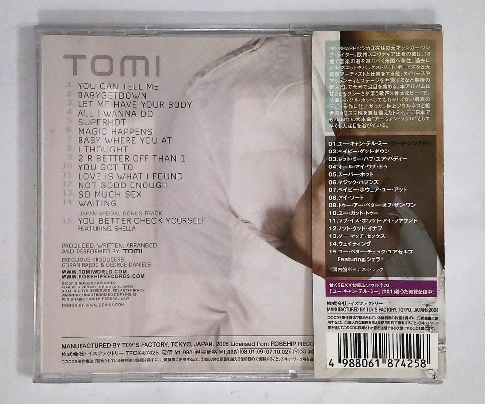 1 You Can Tell Me 2 BabyGetDown 3 Let Me Have Your Body 4 All I Wanna Do 5 Superhot 6 Magic Happens 7 Baby Where You At 8 I Thought 9 2 R Better Off Than 1 10 You Got It 11 Love Is What I Found 12 Not Good Enough 13 So Much Sex 14 Waiting Japan Special Bonus Track 15 You Better Check Yourself