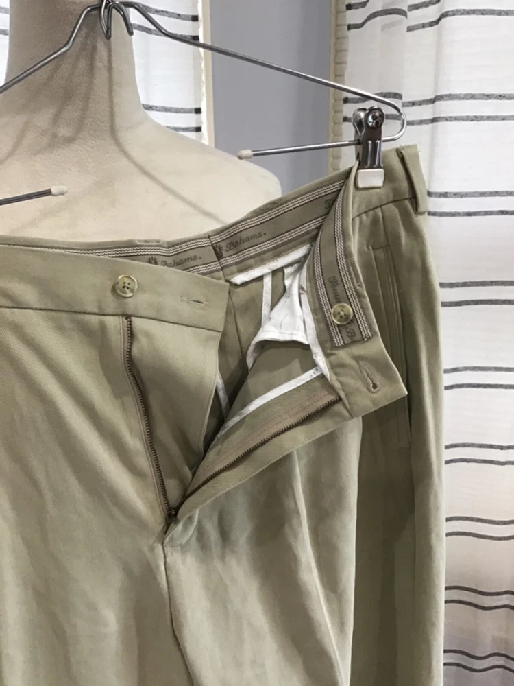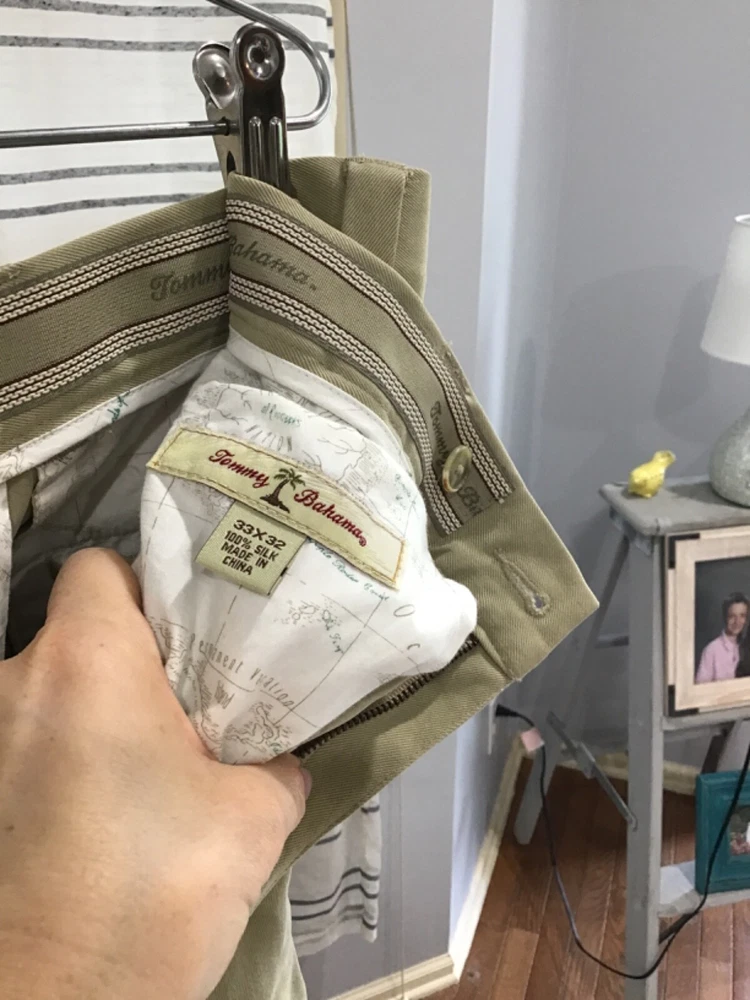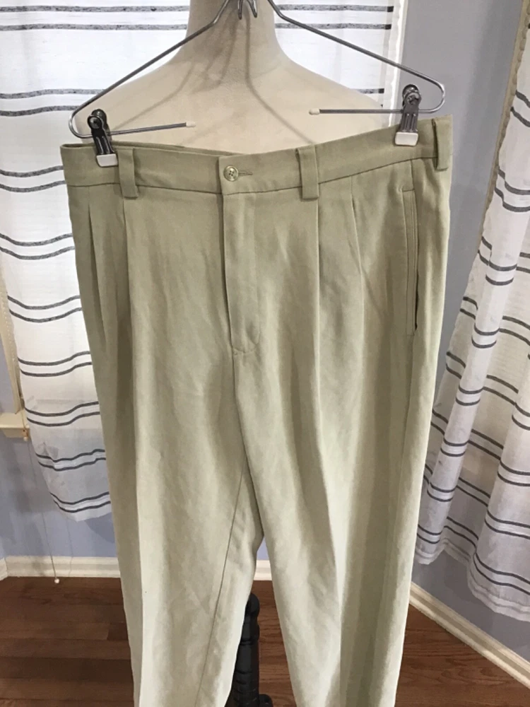 Tommy Bahama Chino Pants Beige 100% Silk Size 33x32 Tagged as Dry Clean Please review pictures for quality and additional size details. The "Condition description" above will contain actual measurements if the measurements on the label of the jeans are off by more then 1 inch. This can be due to shrinkage or stretching. Measurements in the "Item Title" are the actual measurements and not necessarily the size on the label. I ship same day via USPS Ground Advantage Thank you for your business!!