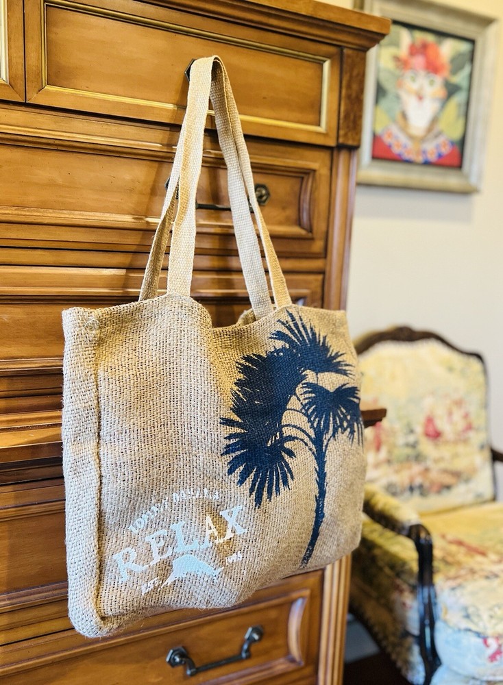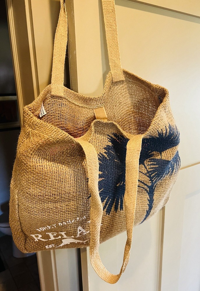 In very good preowned condition. Clean. Velcro closure at top. Great beach tote.