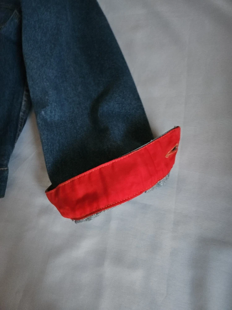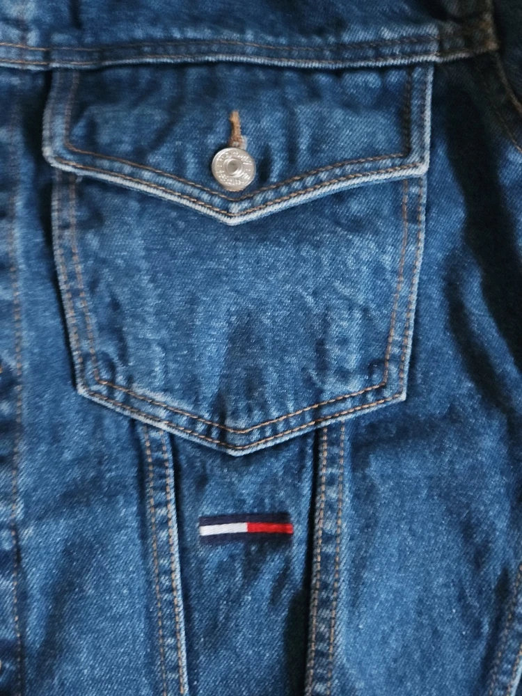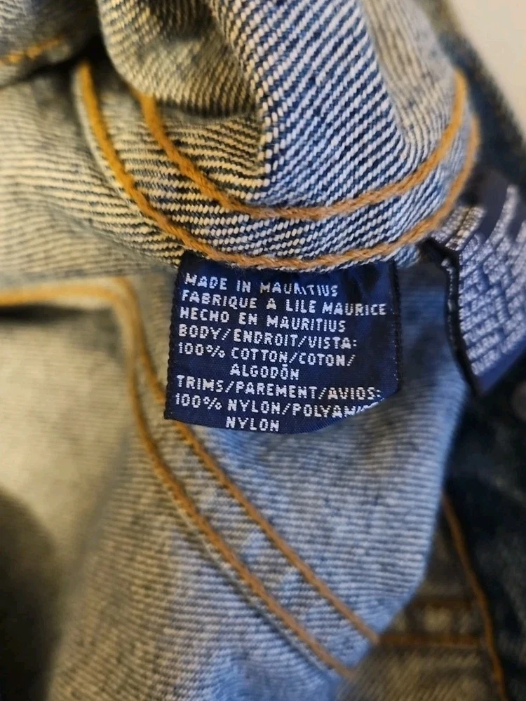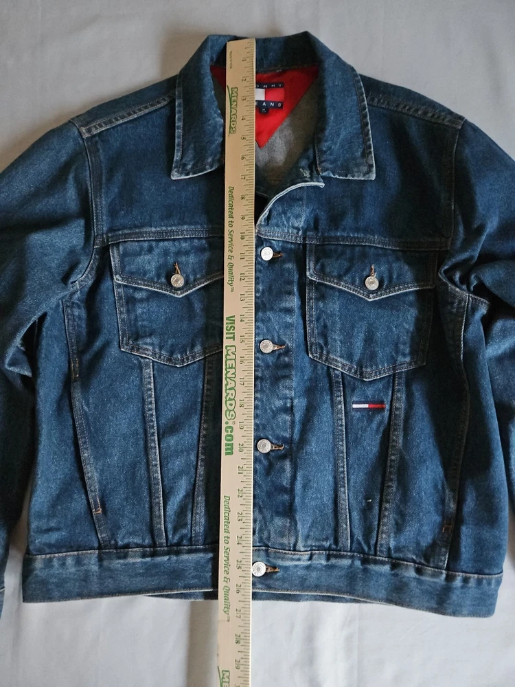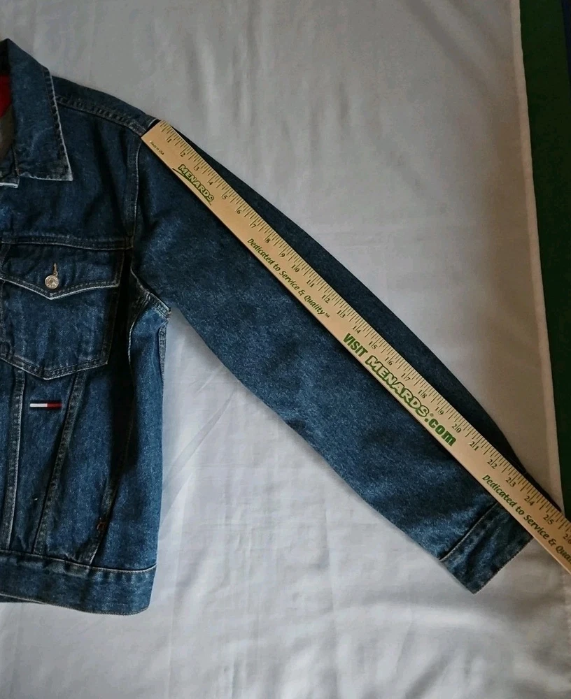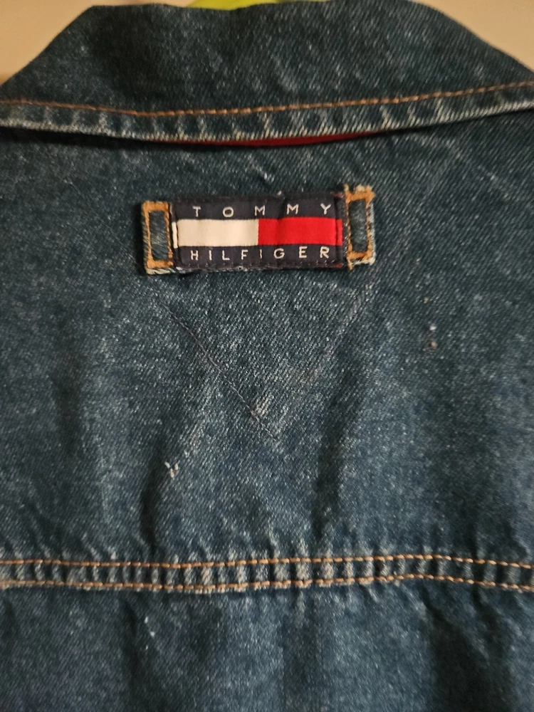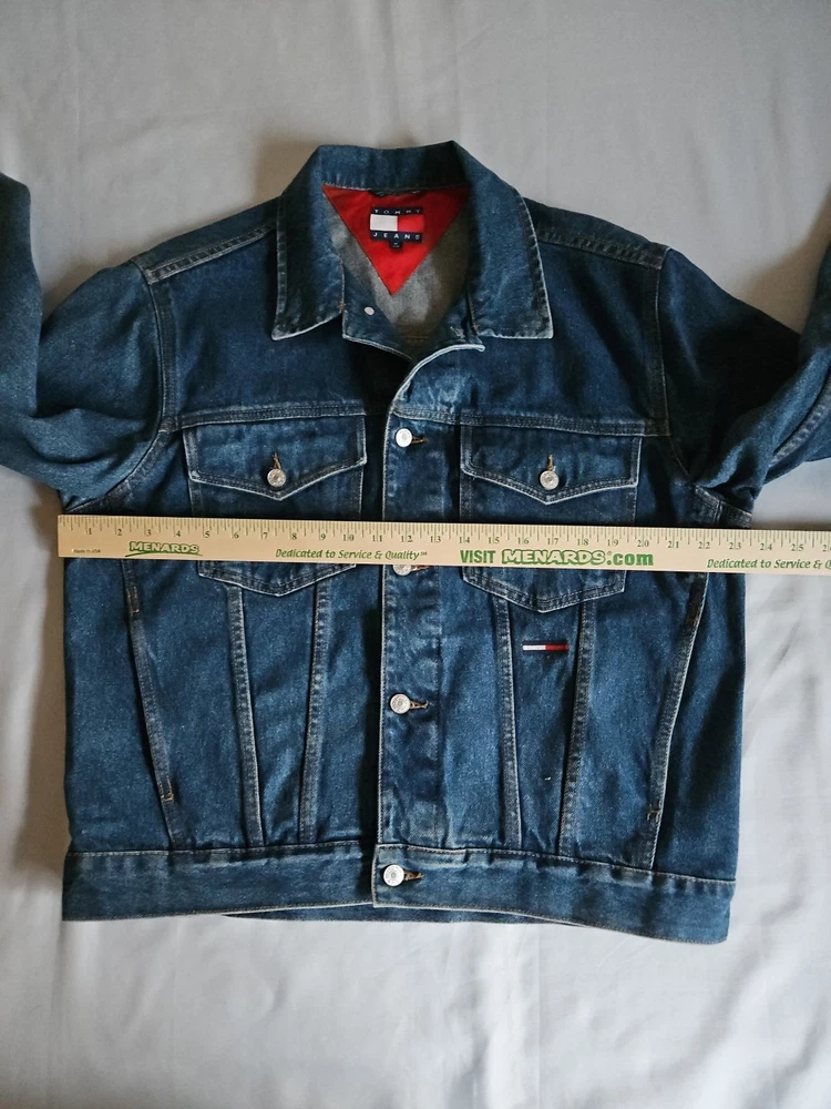 This Tommy Hilfiger denim jacket from the 1990s is a vintage piece with a hip-hop look, featuring red nylon trim and a bold blue color. Made from denim with a regular fit, this jacket is a stylish and unique addition to any man's wardrobe. With a medium size and a chest size of 46 inches, it is perfect for everyday wear and adds a retro touch to any outfit. Made in Mauritius, this original Tommy Hilfiger jacket combines classic style with a modern twist. Pre-owned Excellent Condition