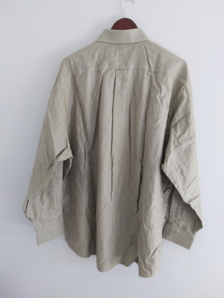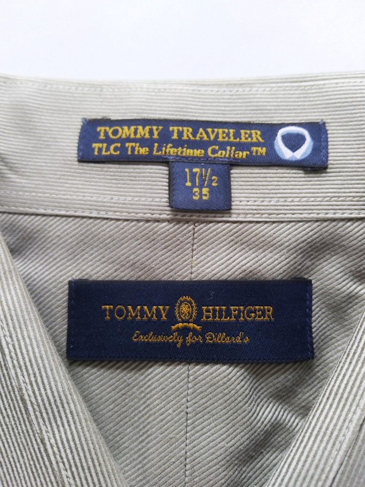 Tommy Hilfiger 17 1/2 35 Traveler Lifetime Collar Pin Striped Dress Shirt Beige Vintage. Shirt has flaws stain in the sleeve and back of neck, please see last two pictures.