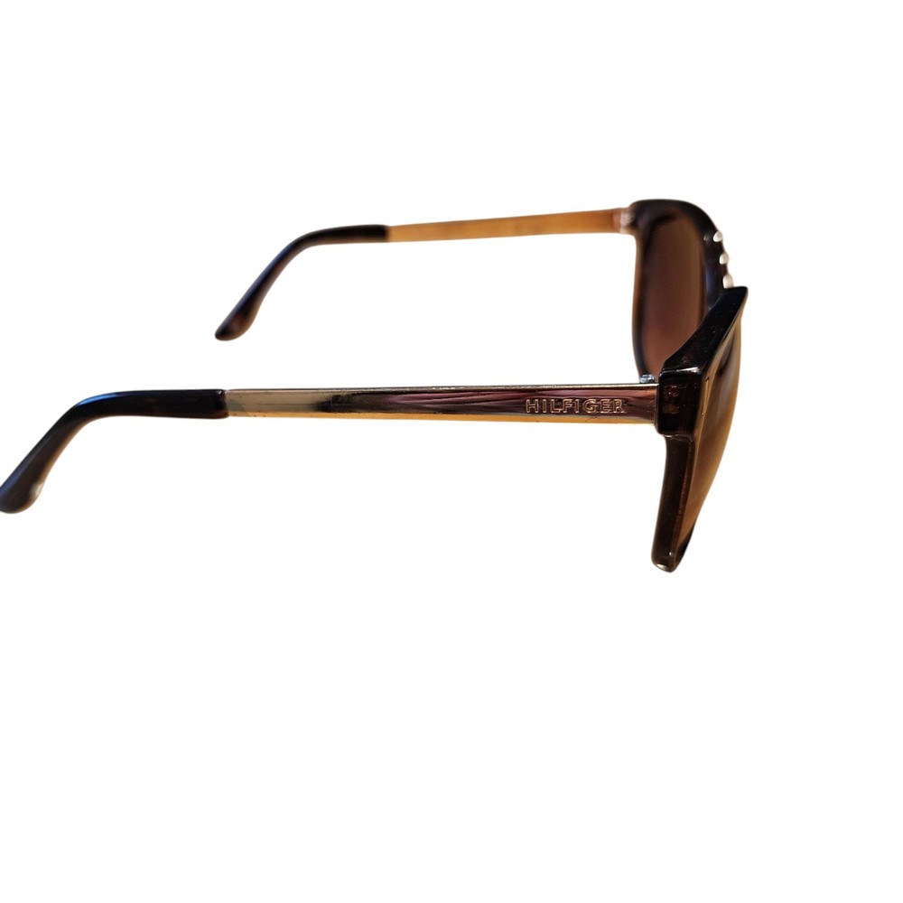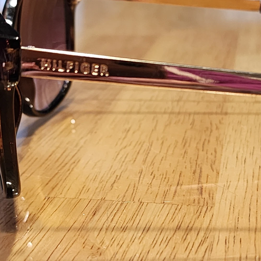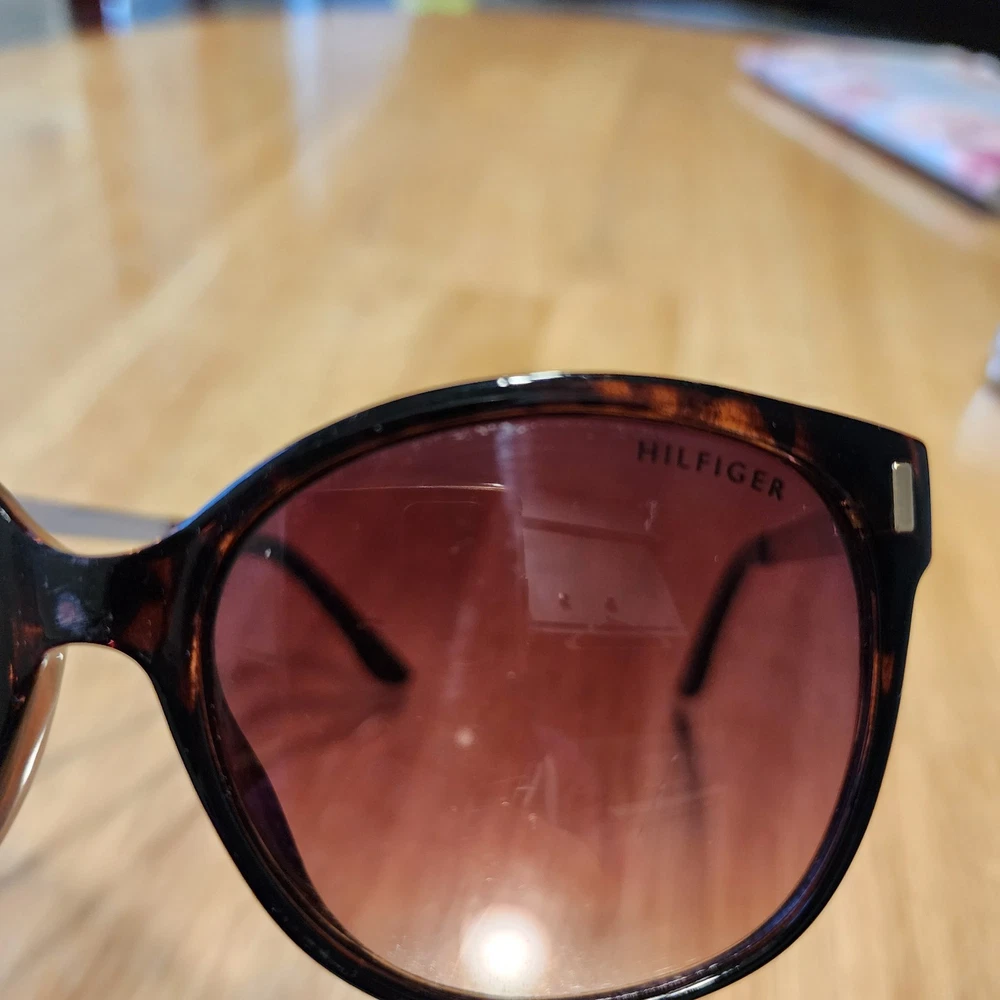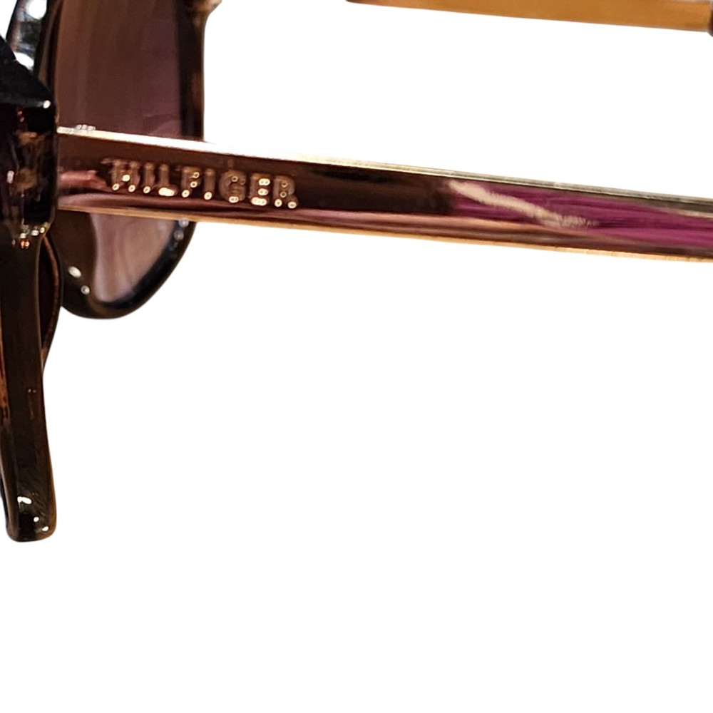 Elevate your style with these Tommy Hilfiger BREEDA WP OL429 women's sunglasses. The brown frame and gradient brown lens provide 100% UV protection, making them not only stylish but also functional. The designer sunglasses are made with a combination of acetate and metal, ensuring durability and comfort. The tortoise shell pattern and Tommy Hilfiger branding add a touch of luxury to your look. The sunglasses are perfect for any occasion, whether you're running errands or going out for a night on the town. Add these stylish sunglasses to your collection today. The lenses have a couple of scratches, tried taking photos of them, please check the pictures.