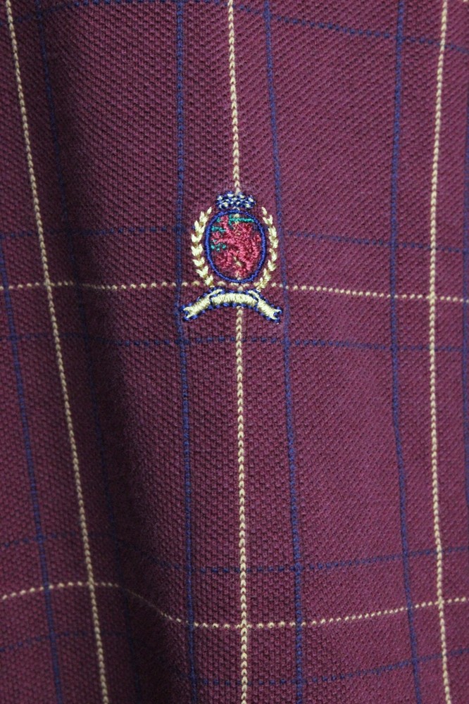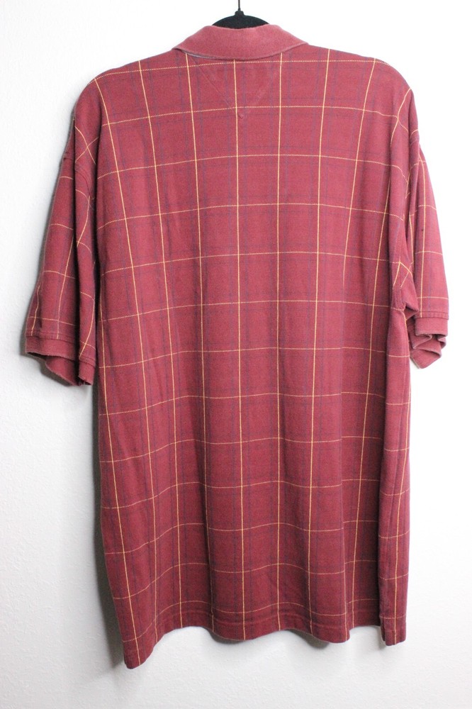 Embrace timeless style with the Tommy Hilfiger Men's Polo Shirt in a striking red check pattern. This classic extra large shirt features a smart button-down collar and short sleeves, perfect for a casual day out or a business meeting. The 100% cotton material ensures comfort and breathability, making it an ideal choice for any season.With its versatile design, this polo shirt can be dressed up or down to suit various occasions, from a city brunch to a casual travel adventure. The shirt's preppy plaid pattern and gold Tommy Hilfiger crest add a touch of designer appeal to your wardrobe, making it a staple piece for those who appreciate both style and quality.