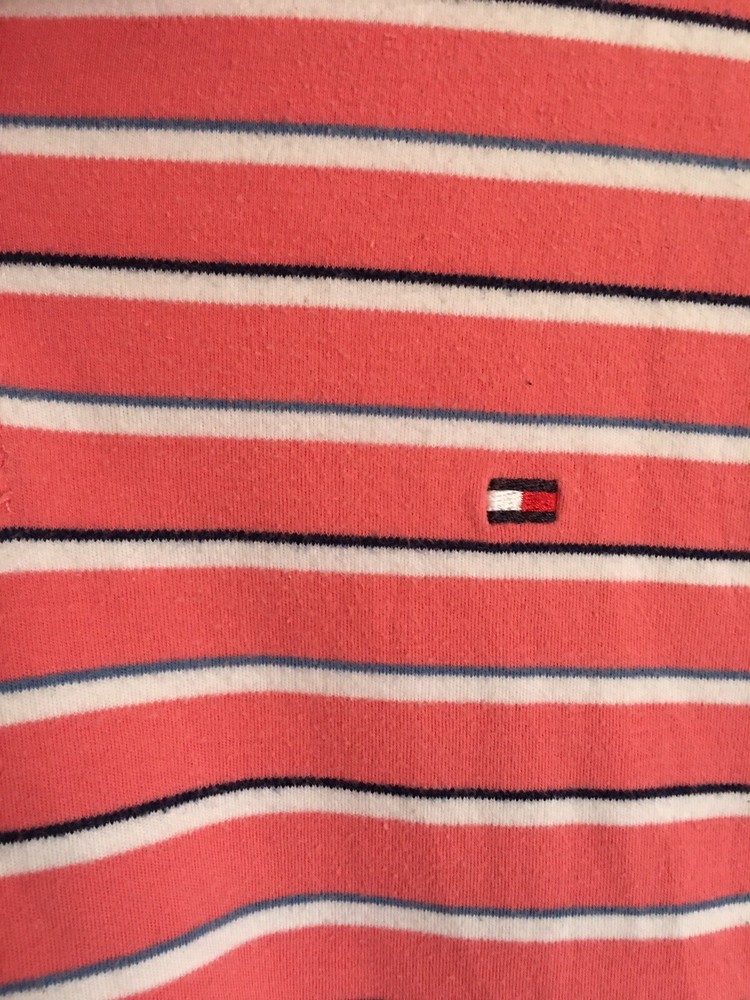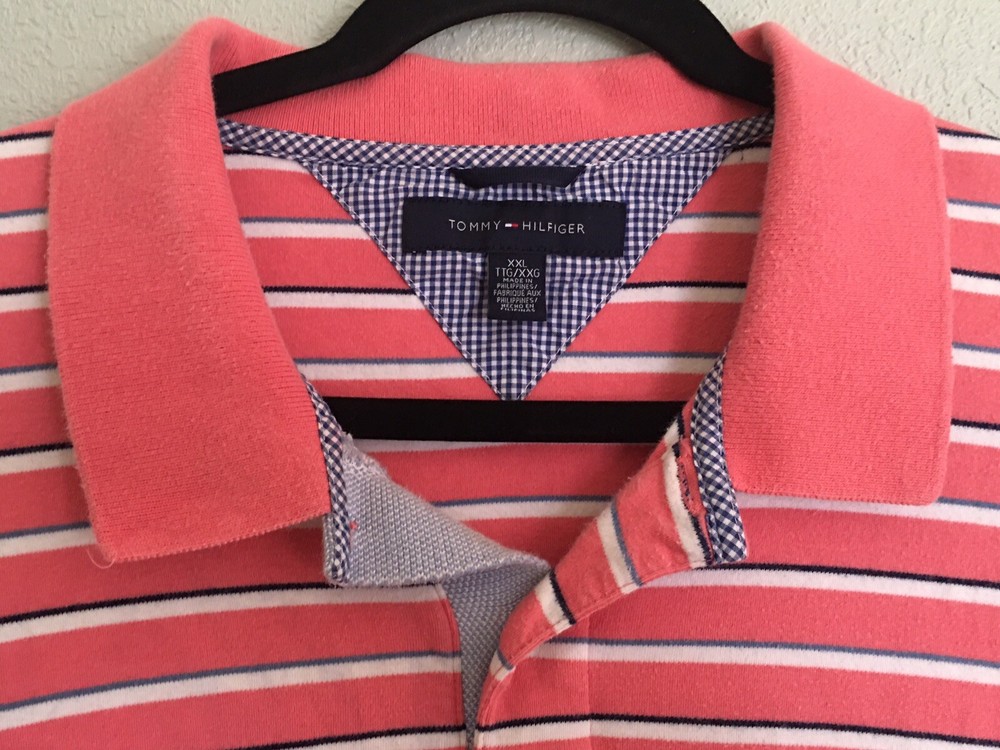Tommy Hilfiger Pink Striped Short Sleeve Casual Polo Shirt Men's Size 2XL XXL. Chest 46in Length 30in. In good used Condition.