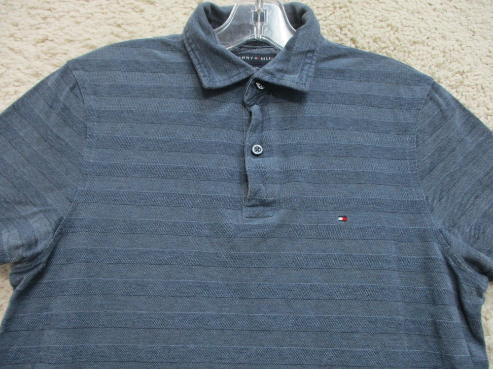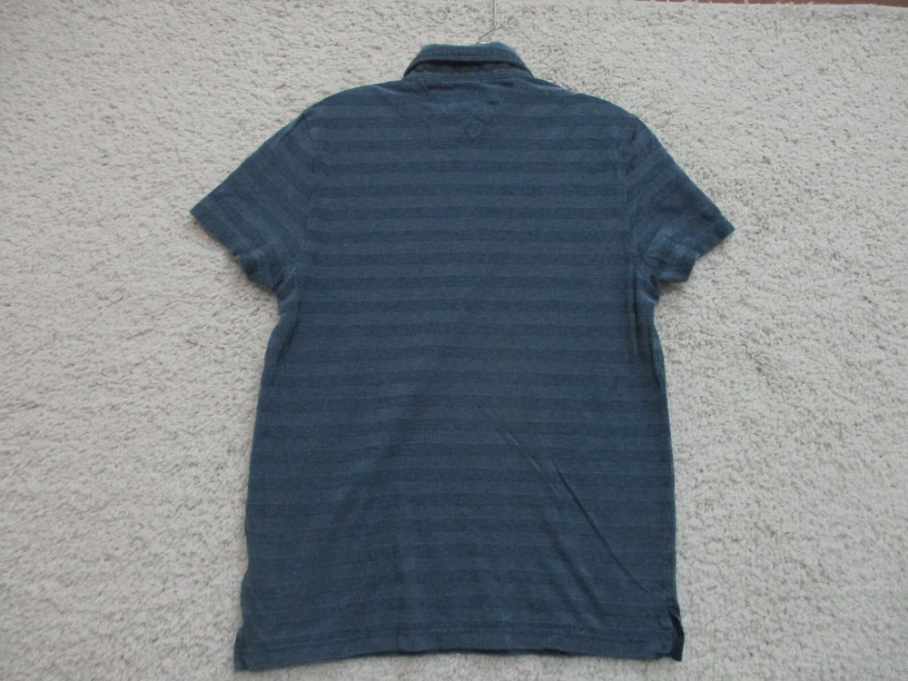 Nike Golf Polo Shirt Mens Medium Blue Black Gray Stripe Dri-Fit Tour Performance