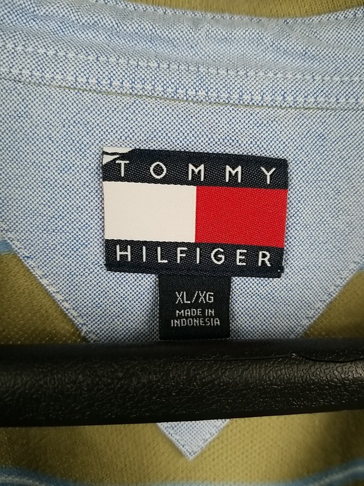 Vintage 90s Tommy Hilfiger Men's L Rugby Polo Long Sleeve Striped Preppy Shirt