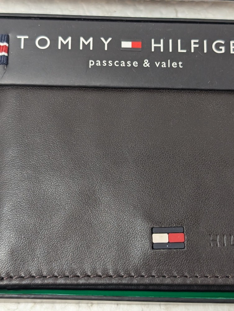 Elevate your everyday style with this brand new Tommy Hilfiger Passcase & Valet Men's Wallet in a sleek brown leather design. This bifold wallet is perfect for the modern man on the go, offering both practicality and sophistication. Keep your essentials organized with multiple card slots, a clear ID window, and a convenient valet feature. Complete with the iconic Tommy Hilfiger logo, this wallet comes in its original box, making it an ideal gift for yourself or a loved one.