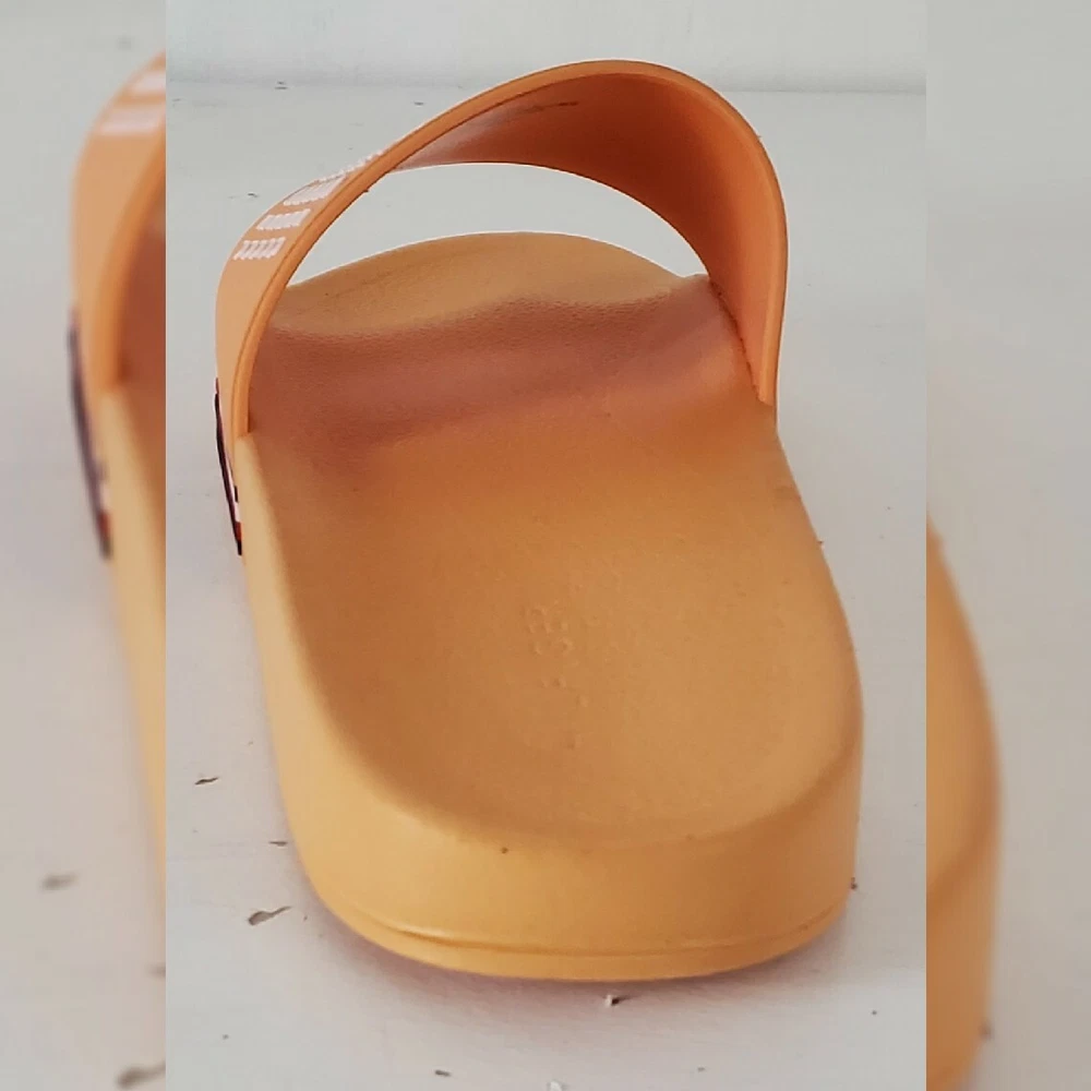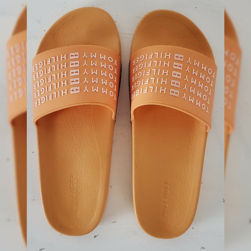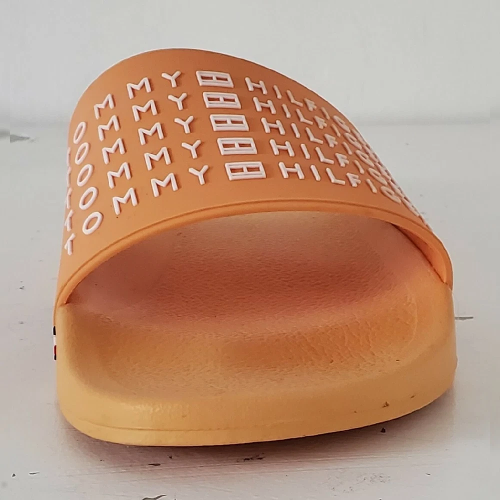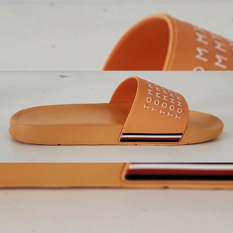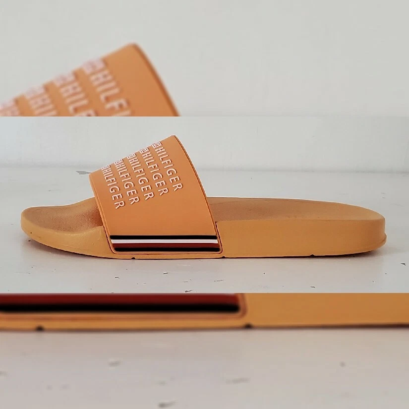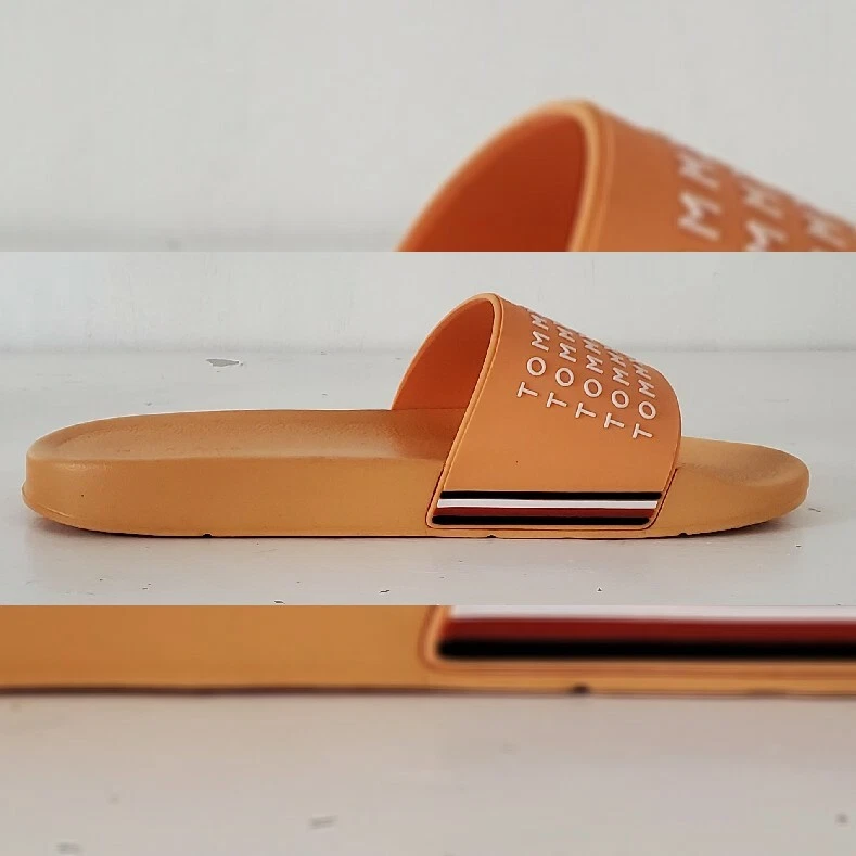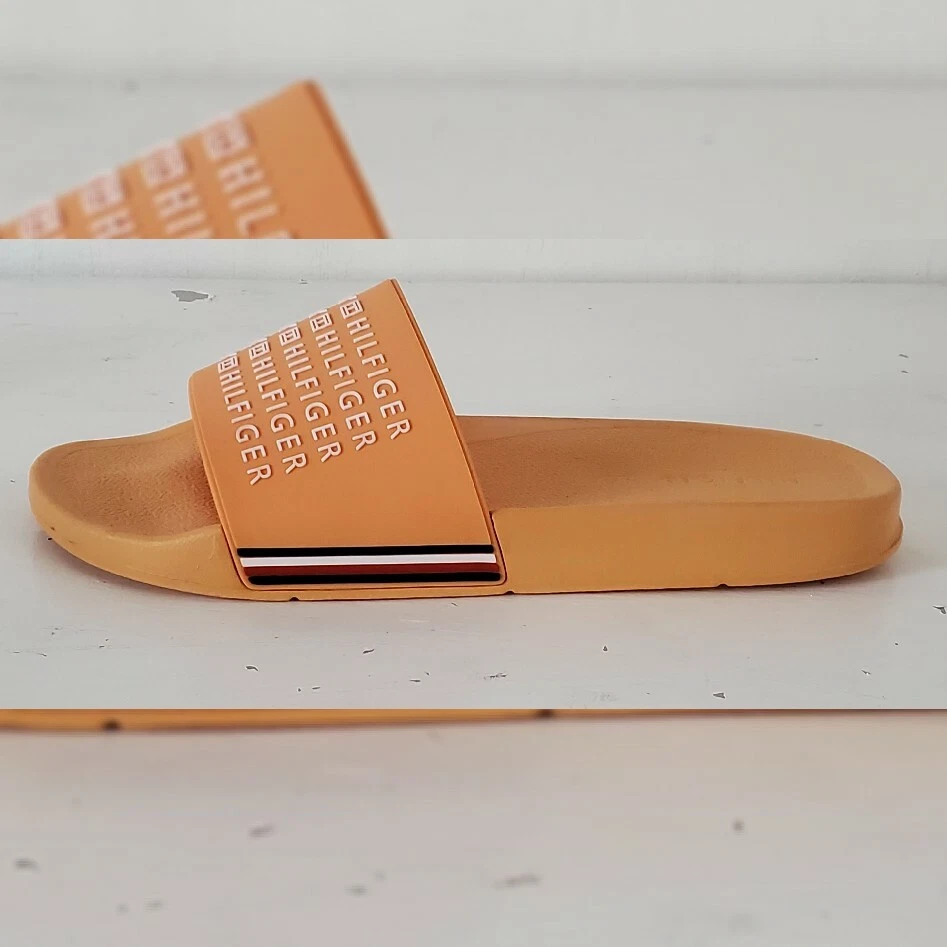 TOMMY HILFIGER AUTHENTIC ESCO-C SLIDE SANDALS MEN'S ORANGE HIGH RELIEF LOGO AND the iconic tommy flag on the sides SIZE 11 LIGHTWEIGHT.CONDITION NEW WITH TAGS.