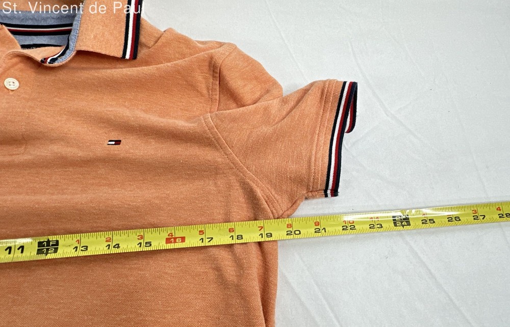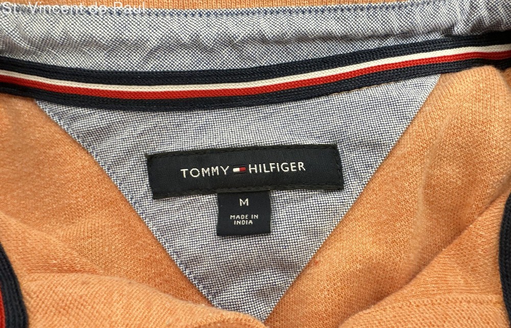 This polo is a total win—vibrant orange peach color with sharp contrast details on the collar and cuffs. The cotton fabric feels so soft and comfy, perfect for summer. Fits true to size with that classic Tommy Hilfiger quality. Love the subtle pride flag touch—stylish and meaningful. Looks brand new, no flaws at all. A must-have for any wardrobe!