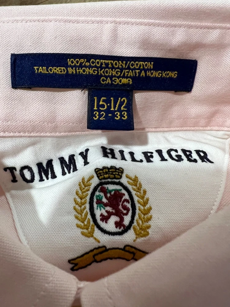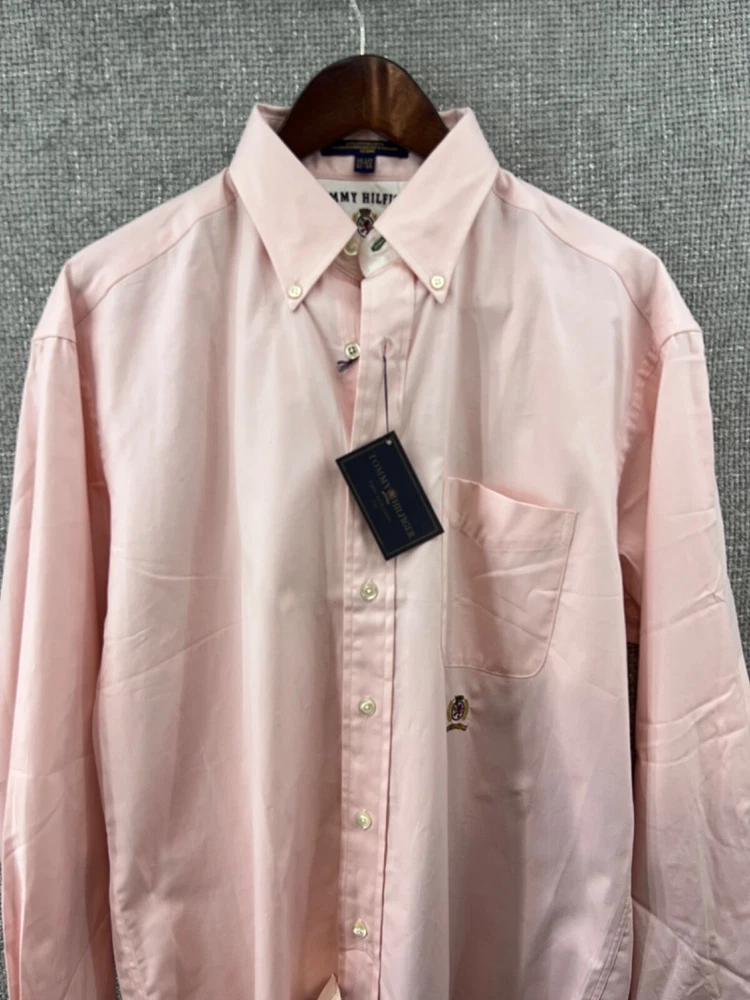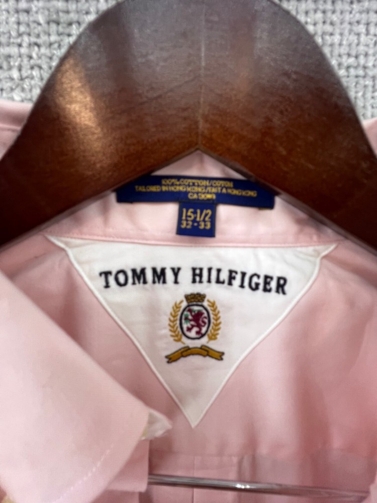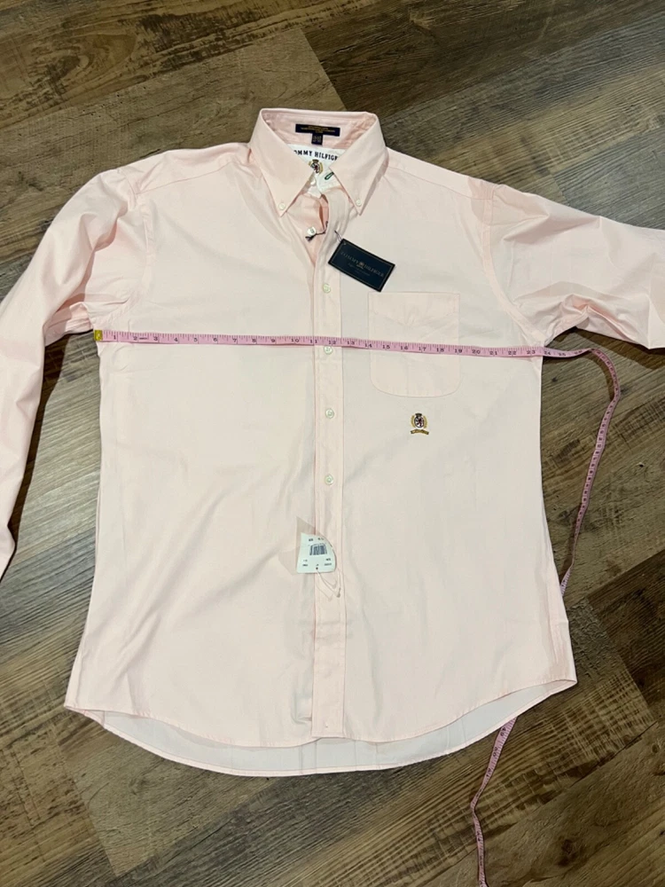 Tommy Hilfiger Mens Dress Shirt size 15.5 Sleeve Length 34 Pink 100% Cotton New! See Picture For Details and Measurements No Returns