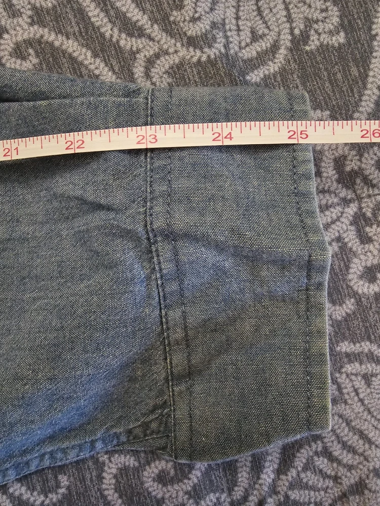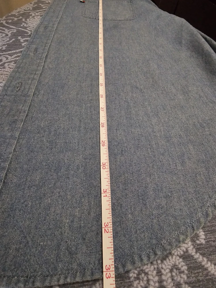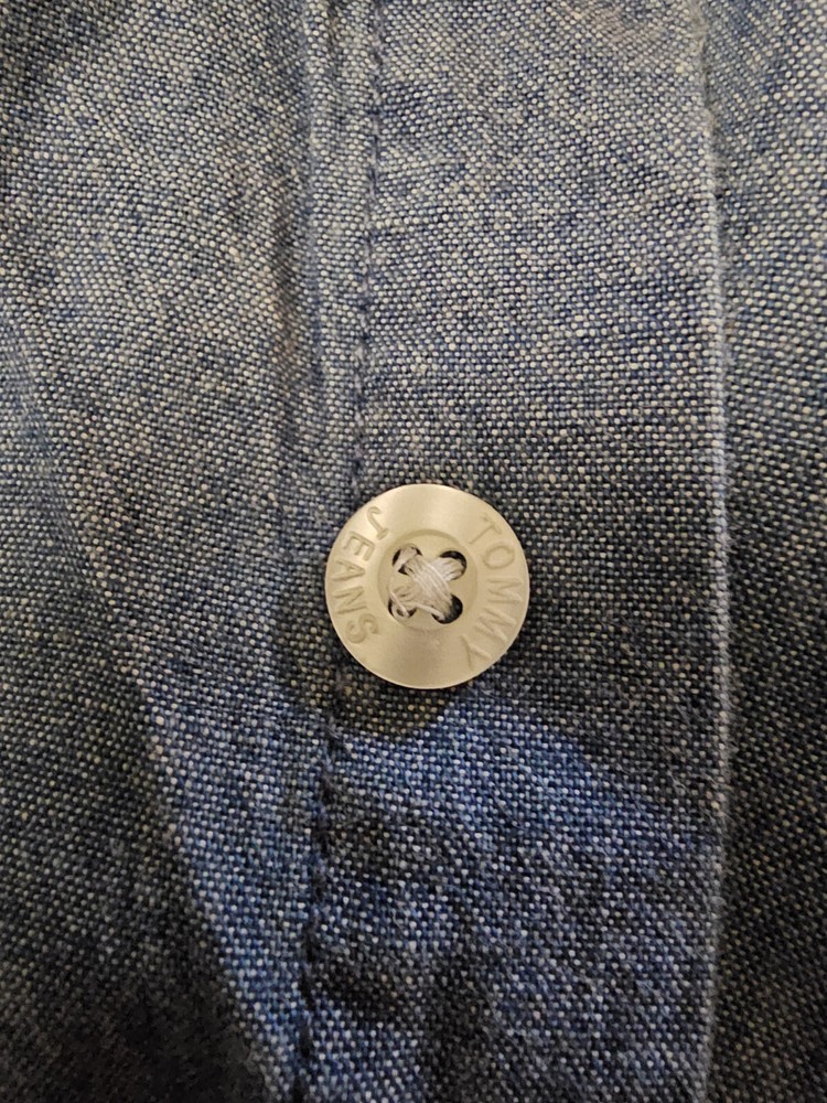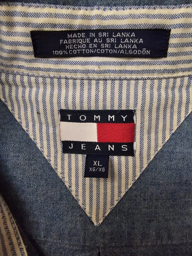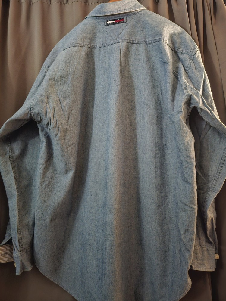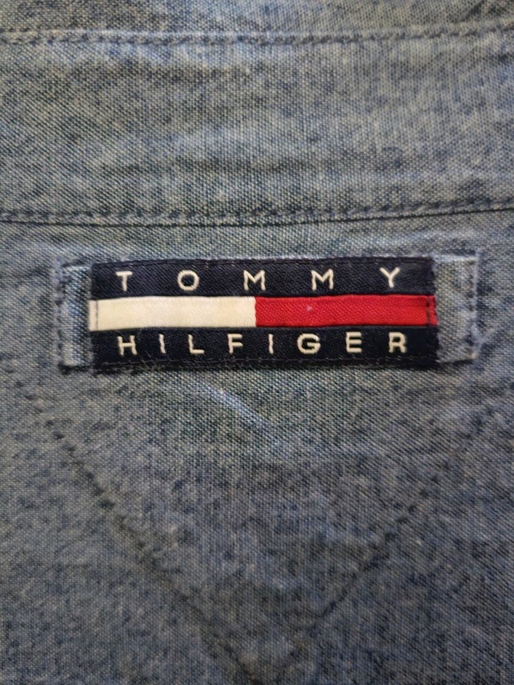 Tommy Hilfiger Mens Denim Shirt XL Blue Embroidered Crest Logo Vintage 90s. Condition is Pre-owned. Shipped with USPS Priority Mail.
