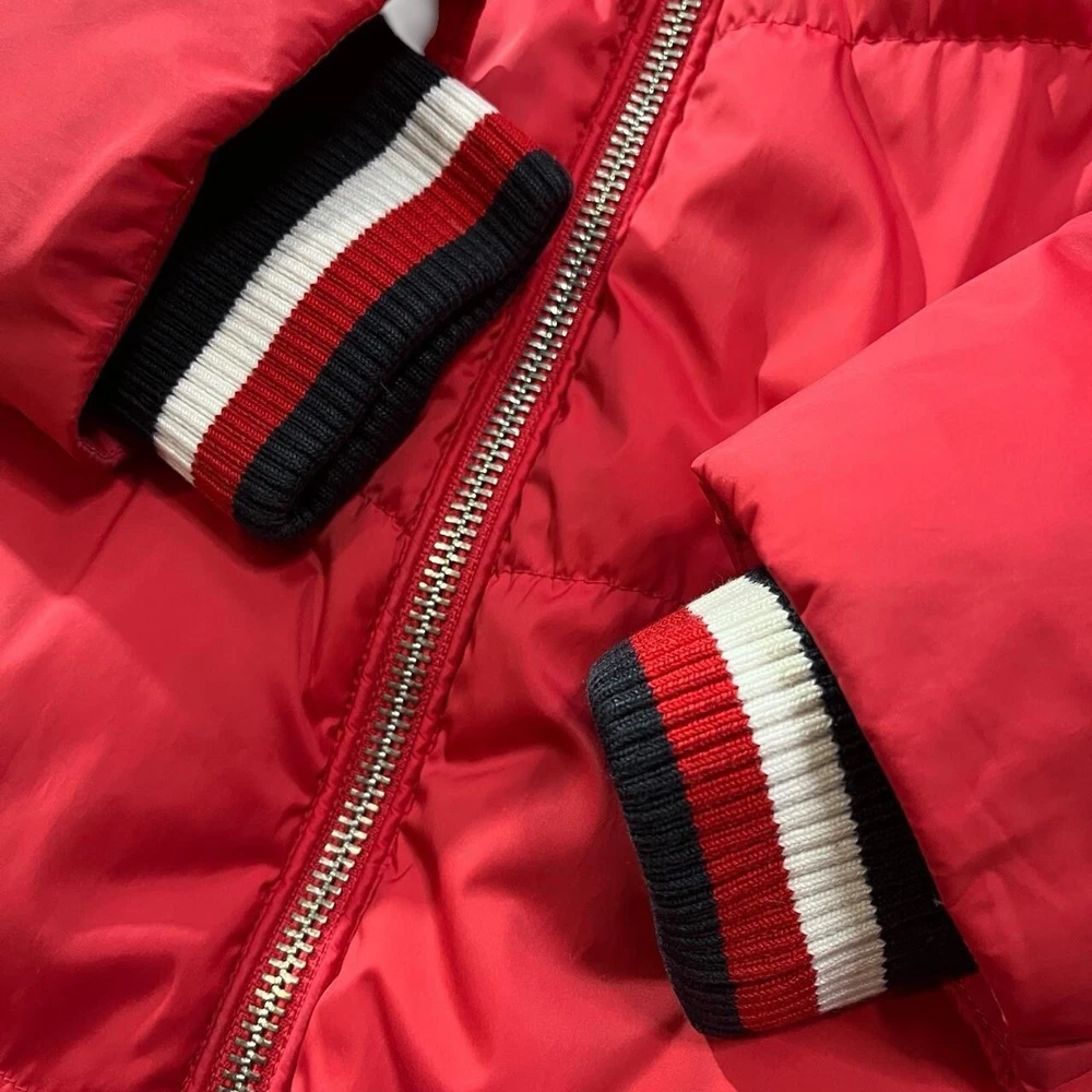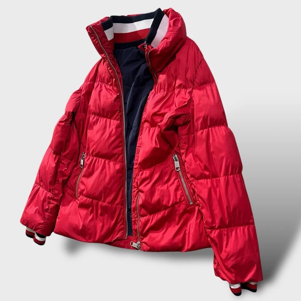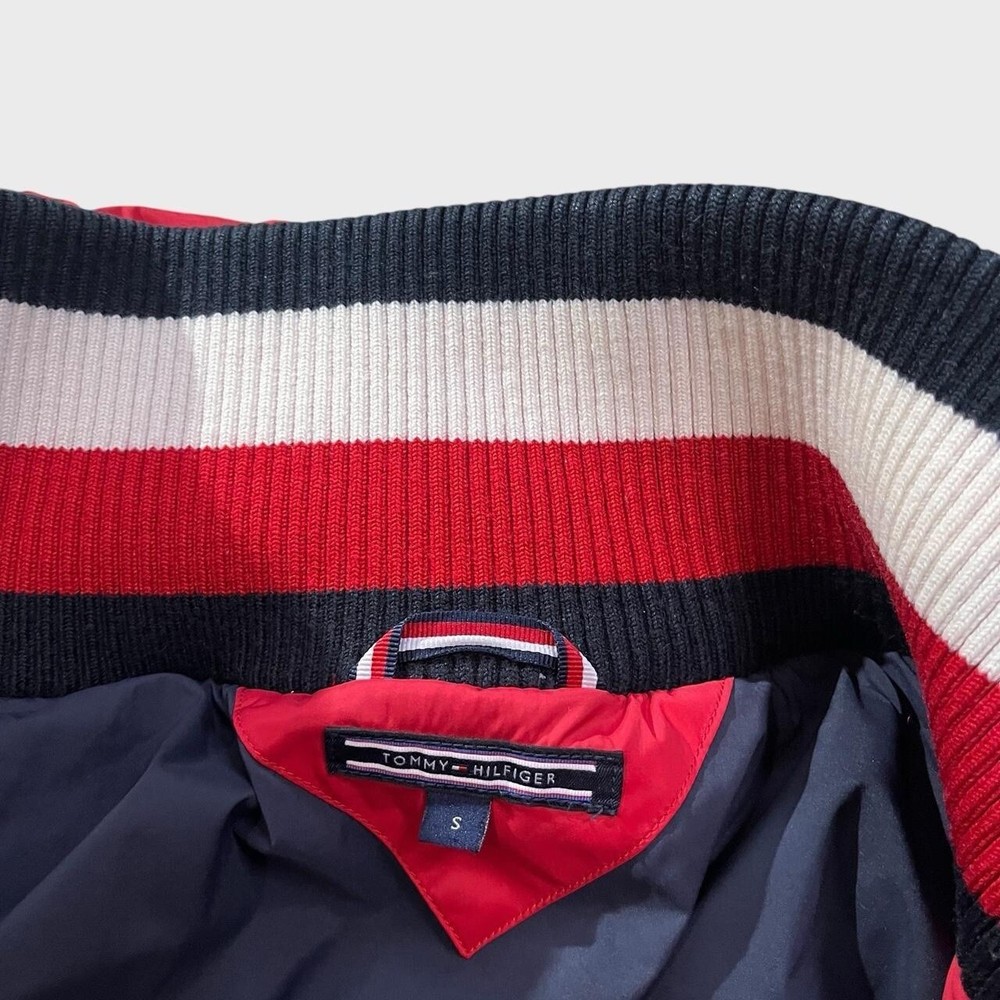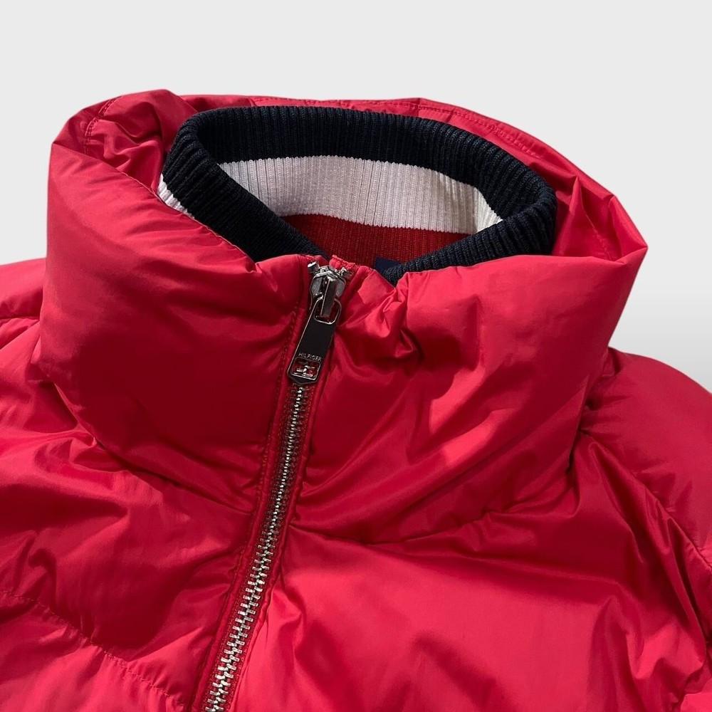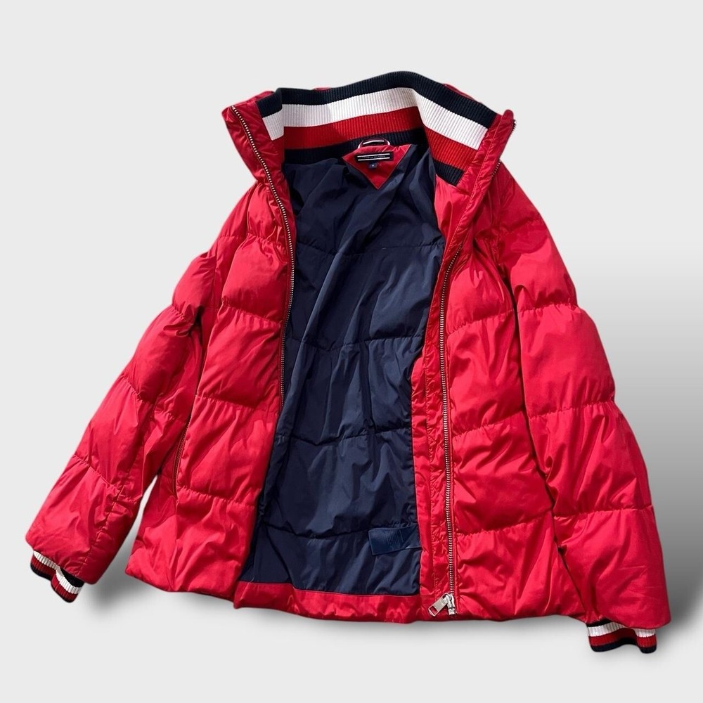 Tommy Hilfiger designer down puffer jacket | red π‘ needs a tumble dry to re-puff the fill which went a little flat after a wash- normal procedure in puffer jackets but I don't have a tumble dryer at the moment- all round excellent condition otherwise π‘ full zip, two zip pockets, ribbed elasticated cuffs and collar/ neck π‘ polyester blend outer, nylon blend lining, 100% down and feather fill π size S fits snug p2p 19" l25"