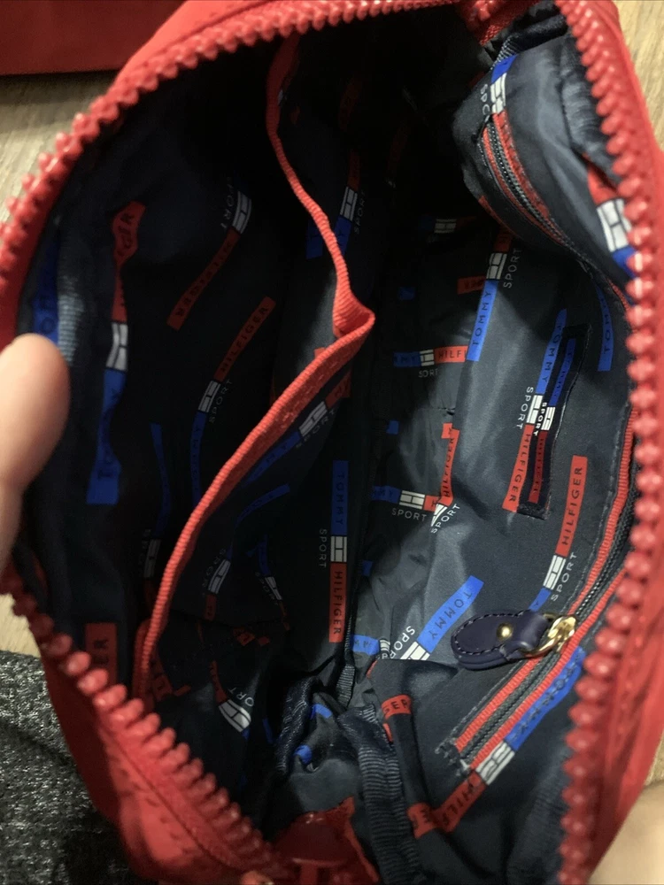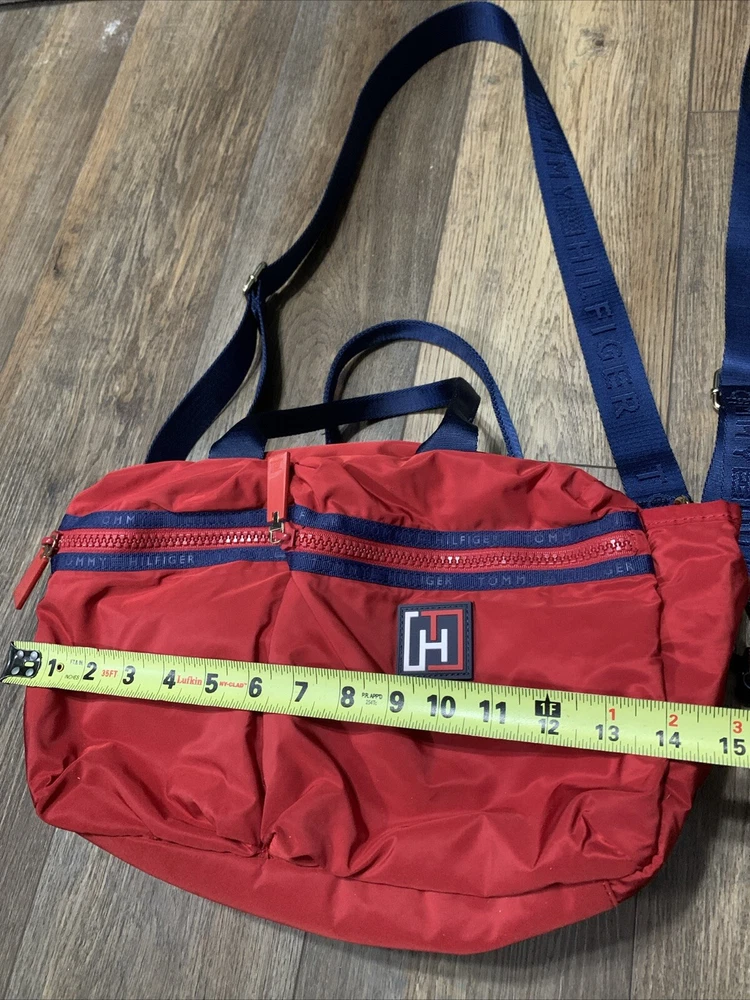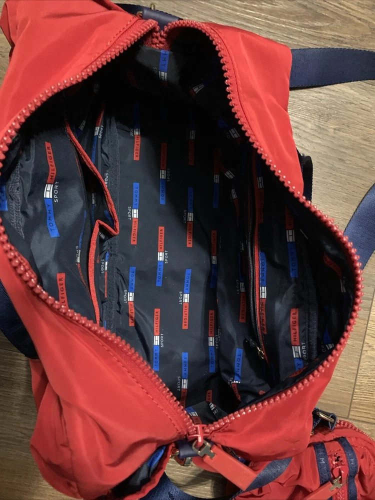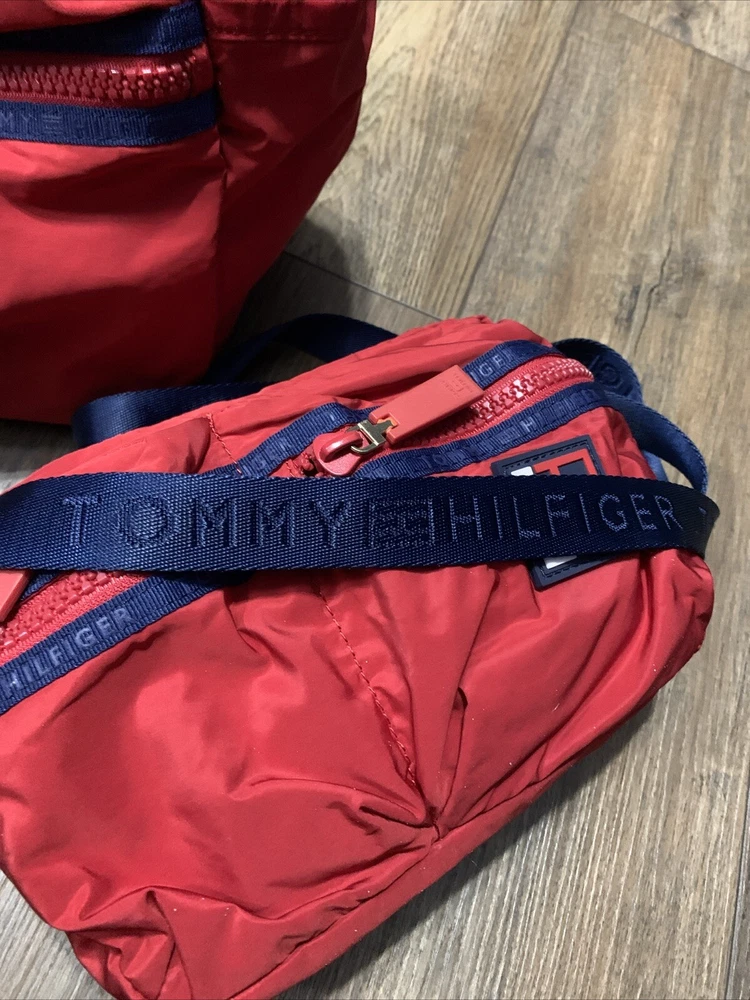 This set of two Tommy Hilfiger Sport Travel Tote Bags is a must-have for any stylish and practical traveler. These bags feature a classic designer pattern with the iconic Tommy Hilfiger logo in red, white, and blue. The bags are made of high-quality canvas material and come with double handles and a crossbody strap for easy and comfortable carrying. The bags have a zip closure and are lightweight, making them perfect for travel. They also feature inner pockets and a navy lining with logo, ensuring that your belongings are safe and organized. With their medium and small sizes, these tote bags are perfect for any occasion and are sure to make a statement wherever you go.