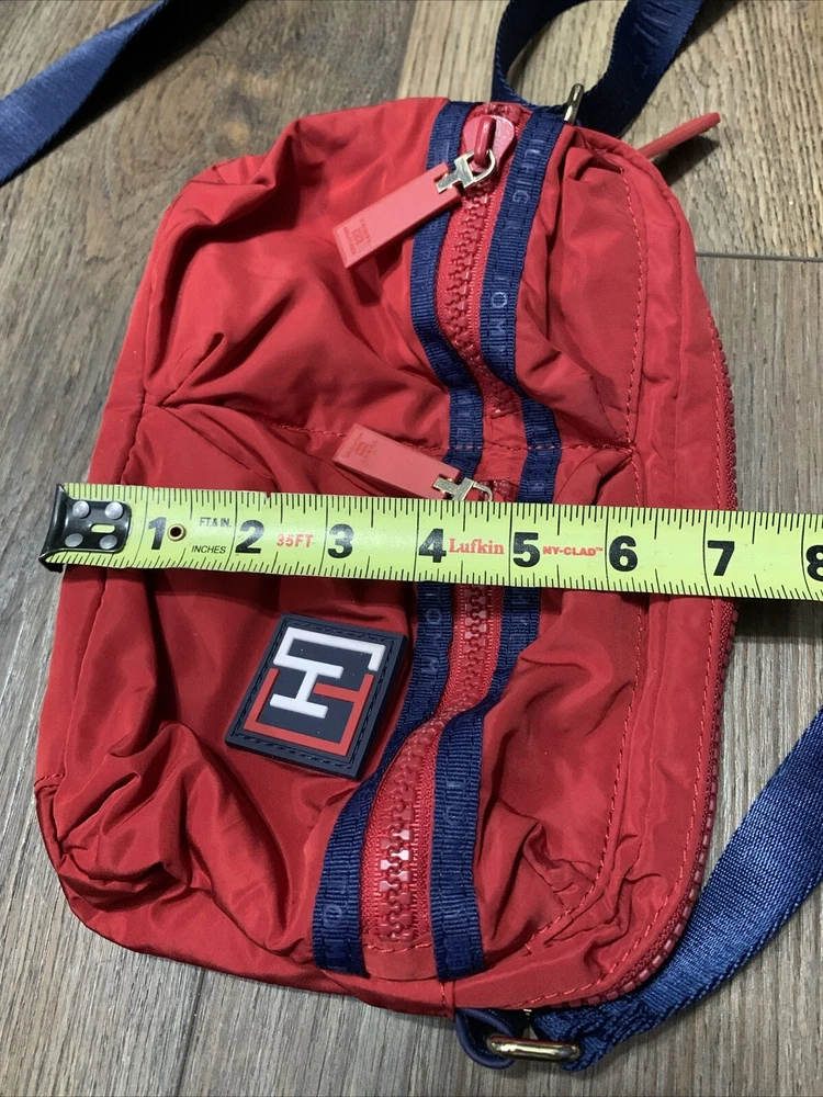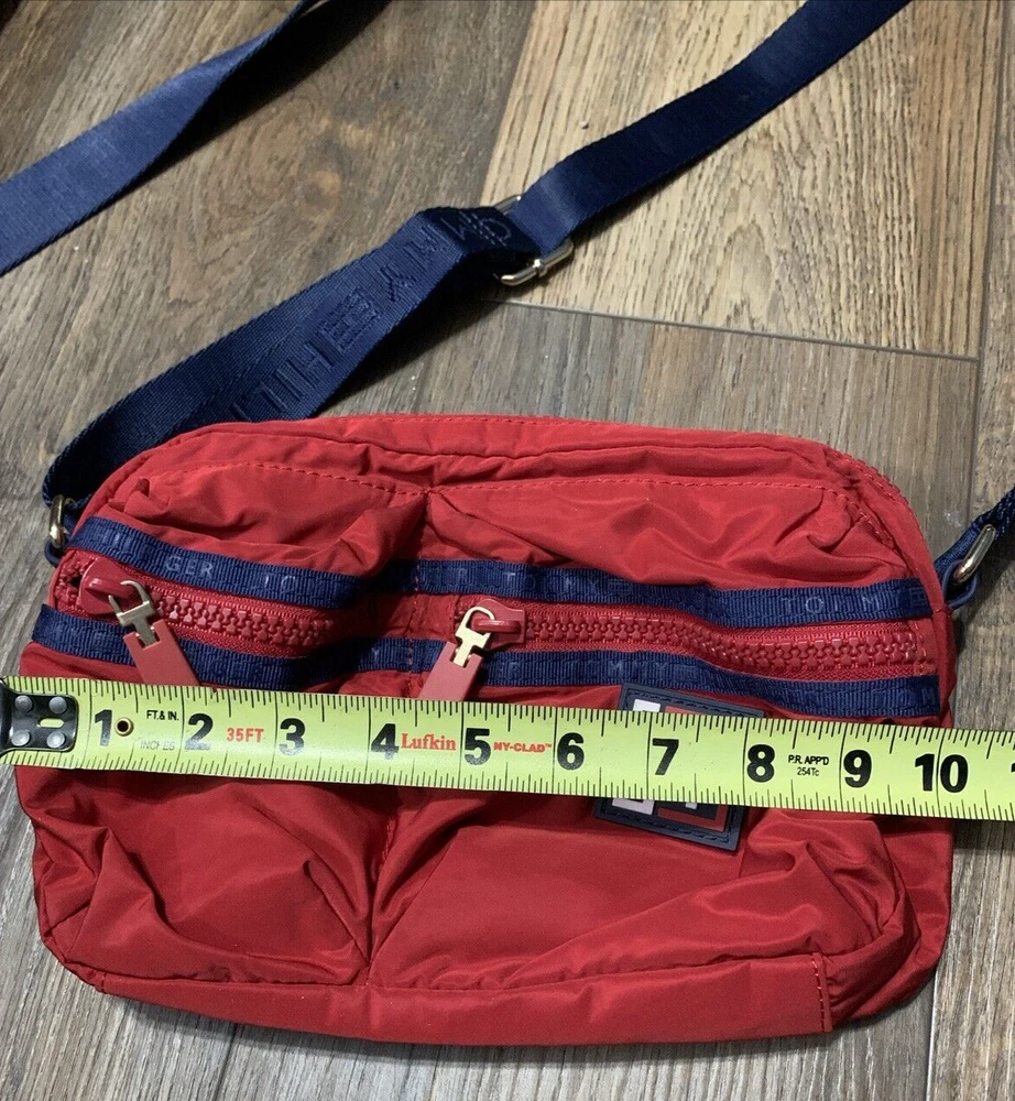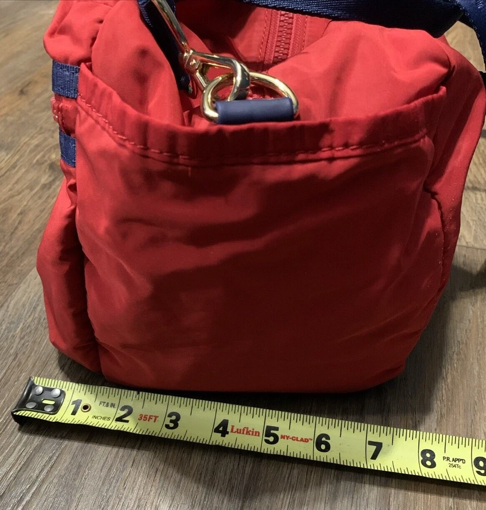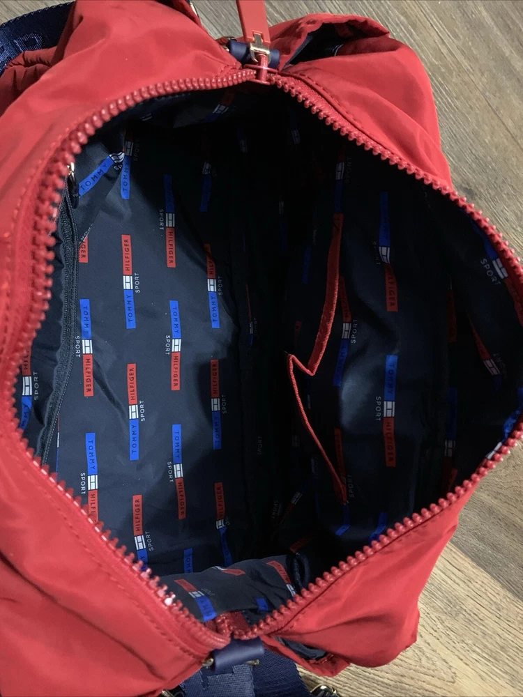 This set of two Tommy Hilfiger Sport Travel Tote Bags is a must-have for any stylish and practical traveler. These bags feature a classic designer pattern with the iconic Tommy Hilfiger logo in red, white, and blue. The bags are made of high-quality canvas material and come with double handles and a crossbody strap for easy and comfortable carrying. The bags have a zip closure and are lightweight, making them perfect for travel. They also feature inner pockets and a navy lining with logo, ensuring that your belongings are safe and organized. With their medium and small sizes, these tote bags are perfect for any occasion and are sure to make a statement wherever you go.