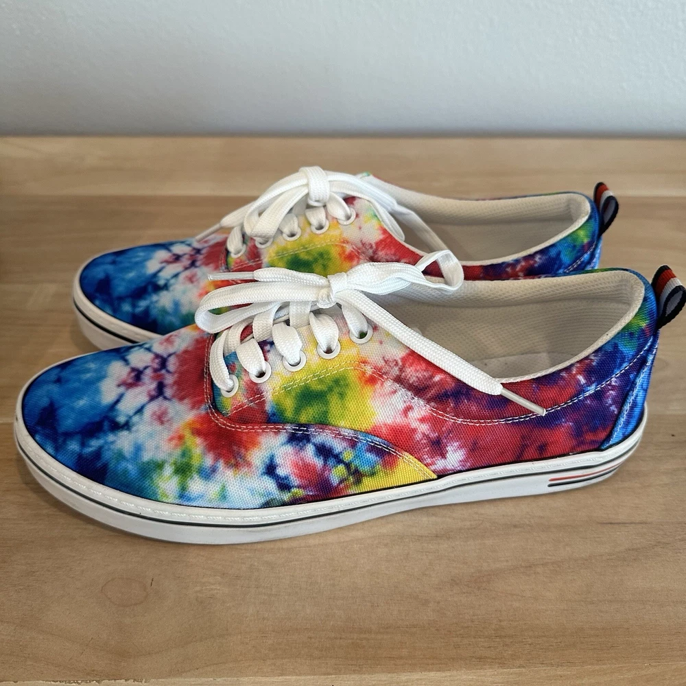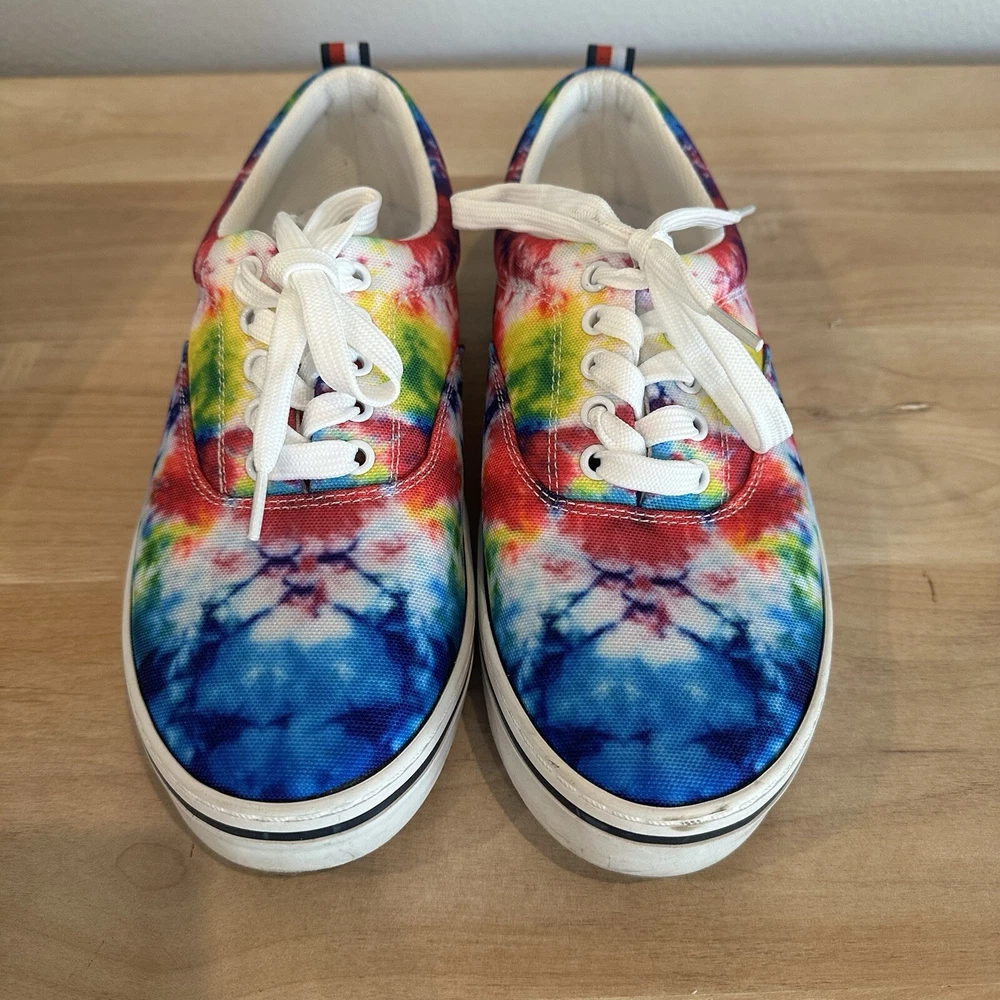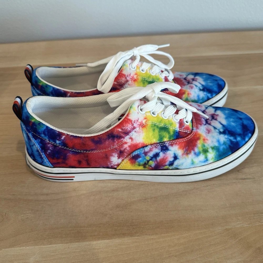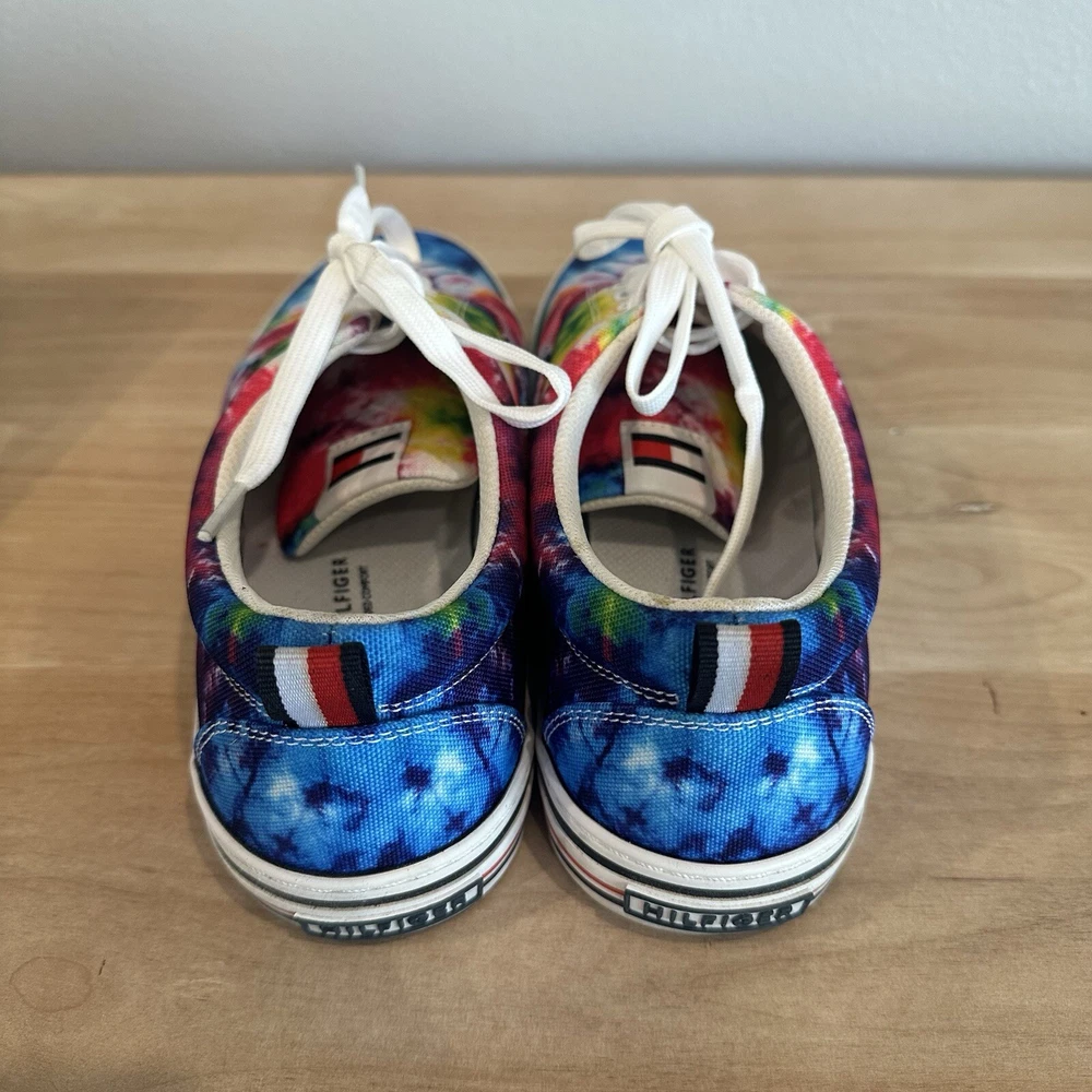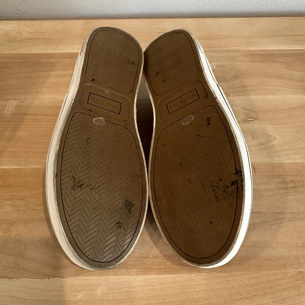 These are in-store returns. Uppers are in excellent like new condition & lowers have street wear. Great pair of shoes! Men's 9 M Tommy Hilfiger. Buyer purchases shoes as is. Box has ware. Box is included.