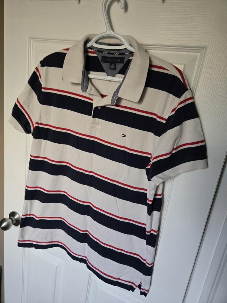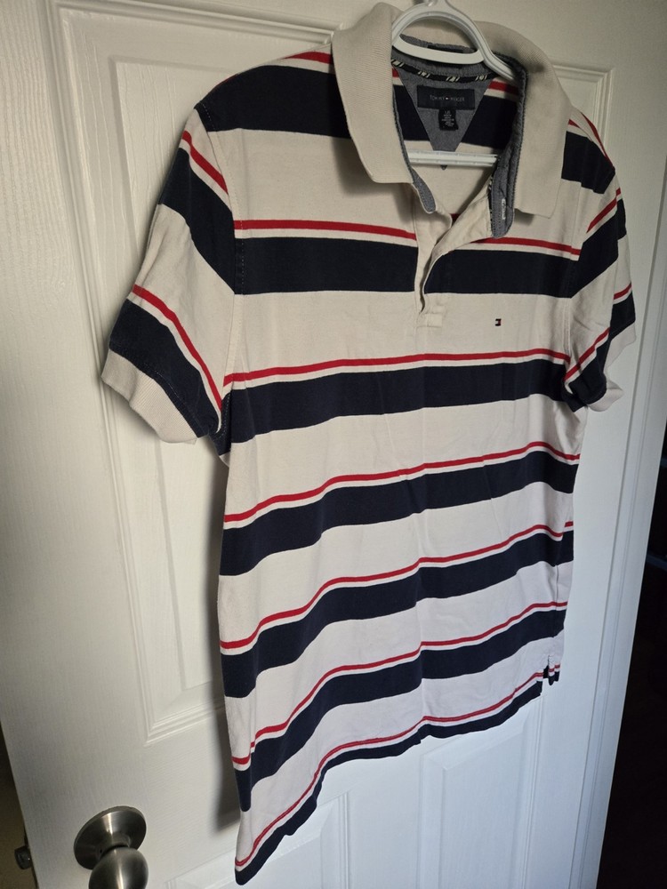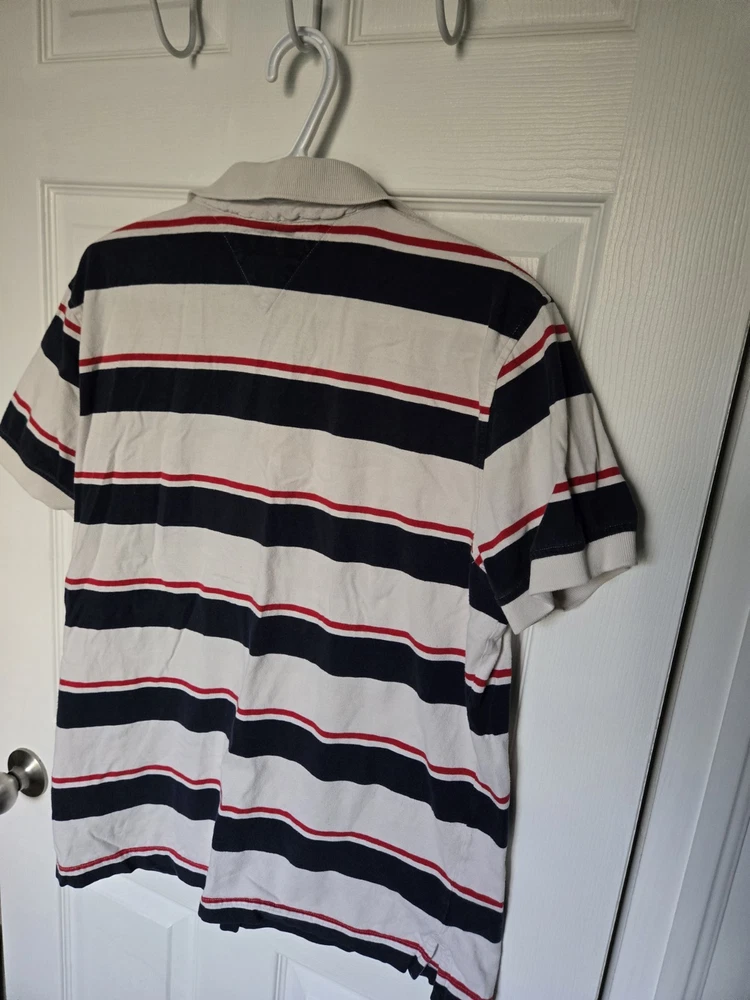 $ 7.92Tommy Hilfiger Medium Blue White Striped Polo Shirt for Men