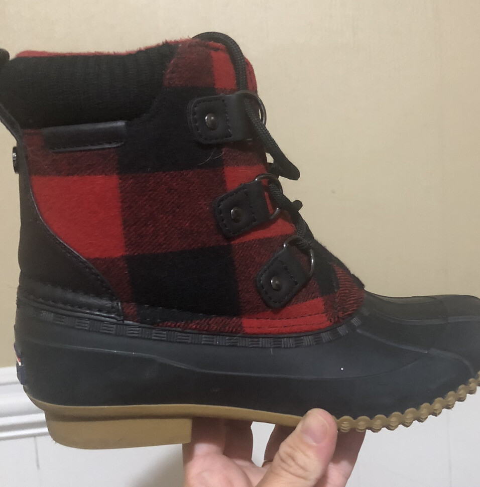 Tommy Hilfiger Retina Outdoor Snow Boot Womens Size 6 Black Blue Red. Excelente condition fast shipping