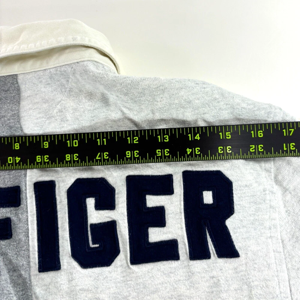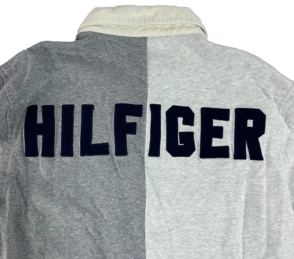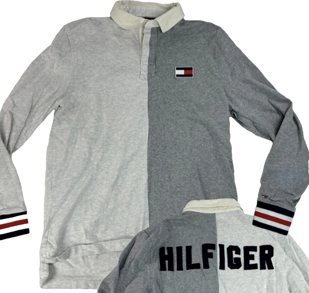 This Tommy Hilfiger rugby polo is a stylish throwback with its split-color design and bold Y2K logo. The long sleeves and comfortable fit make it perfect for layering or wearing solo. The quality fabric feels great, and the gray tones are versatile for any outfit. Love the vintage vibes—definitely a standout piece!