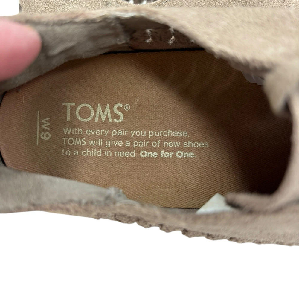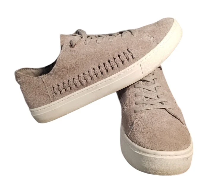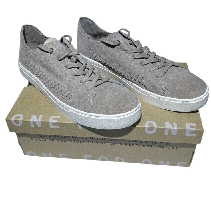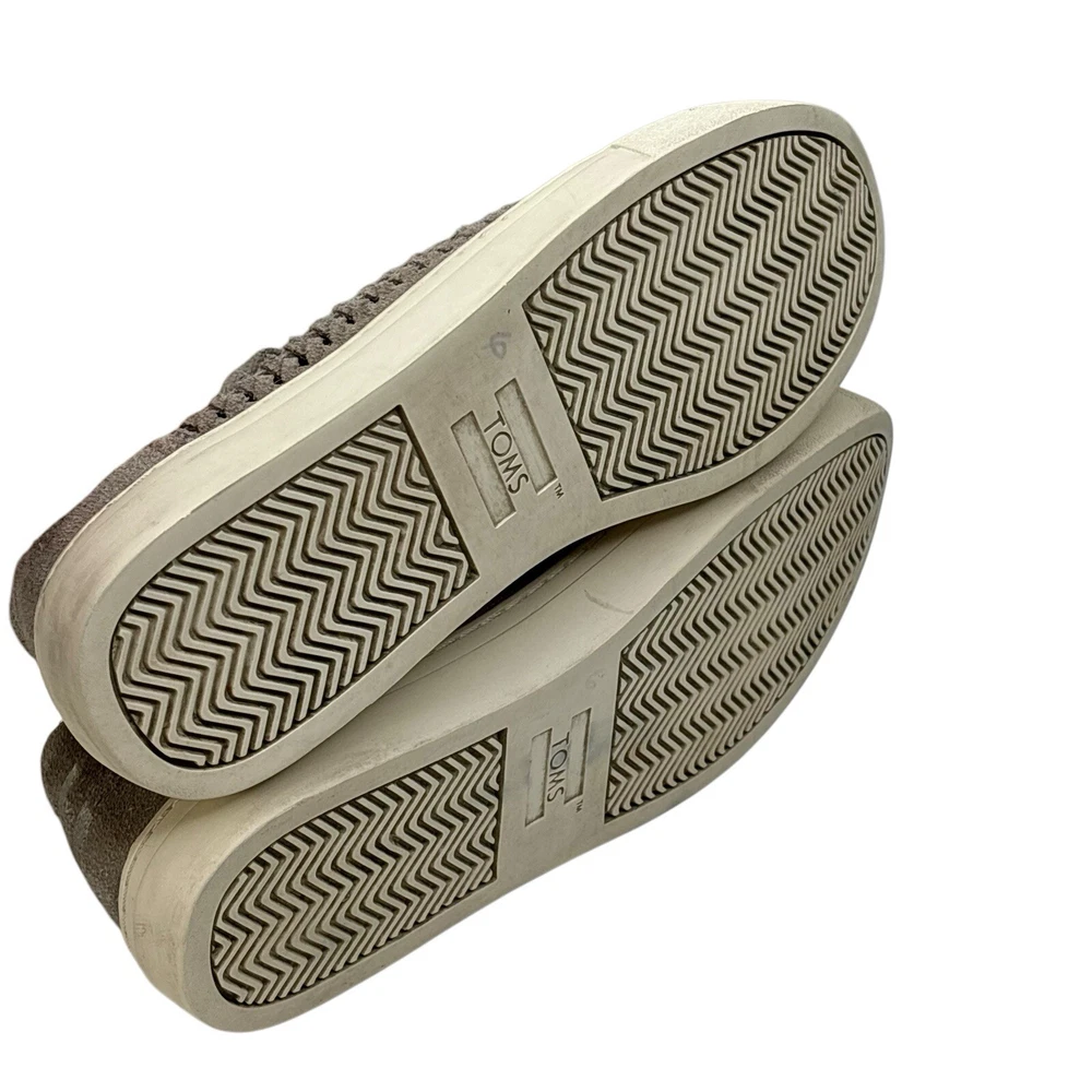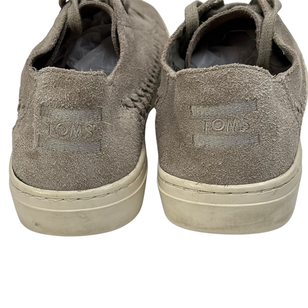Condition Gently Worn No Known Flaws MSRP $99 1.5” Cream Platform Rubber Sole These Toms slippers feature a soft suede material in a light taupe gray color, providing a comfortable and stylish look. The low-top design is complemented by matching gray laces and a contrasting cream platform rubber sole, making them perfect for casual wear. Clean Home Non Smoking No Pets Loft241229