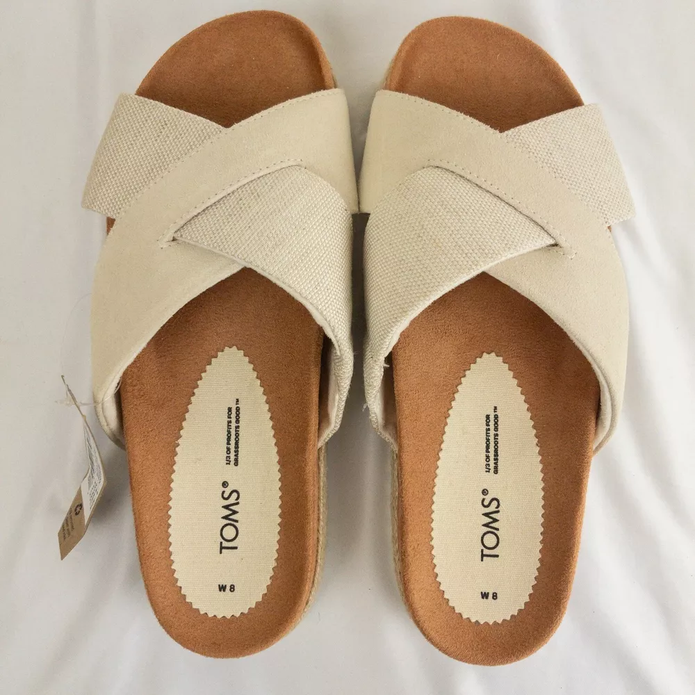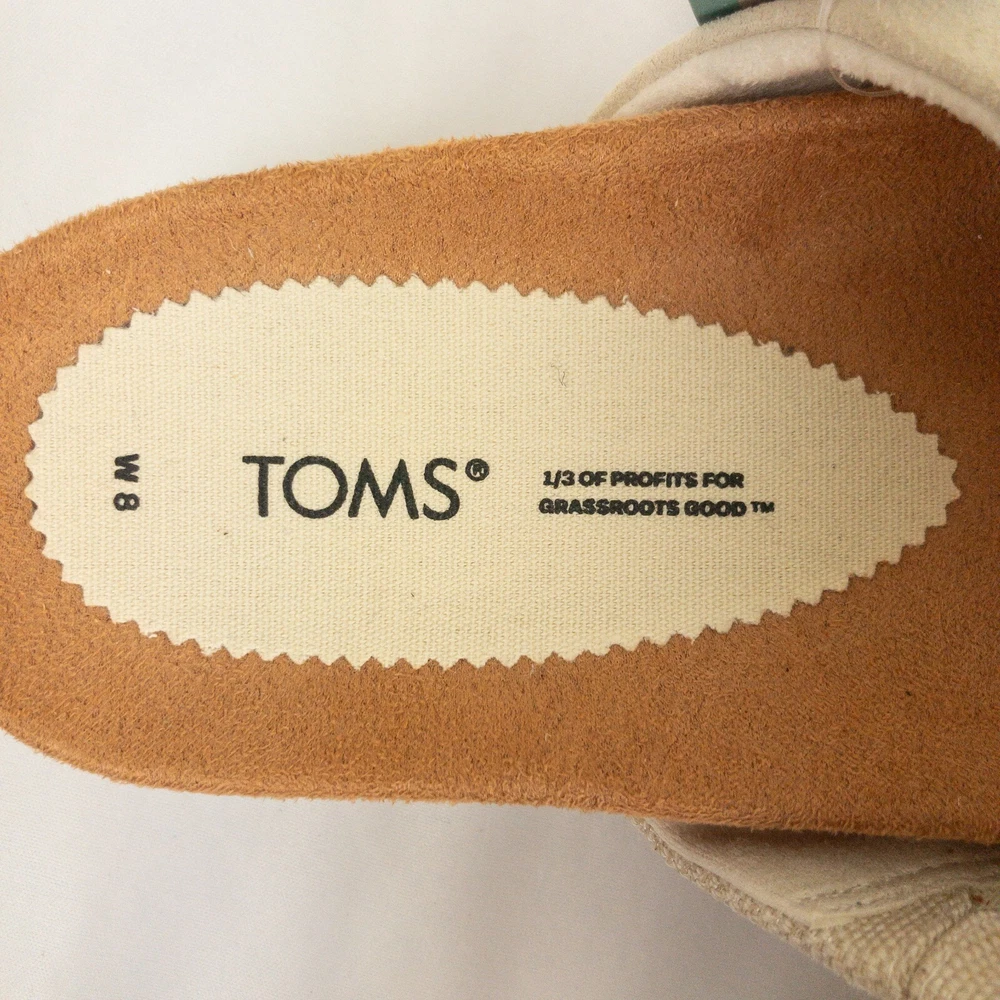 Item Description : Tom's Sandals Notes & Features : Style Name: Paloma Criss Cross Woven bottom Size : Women's Size 8 Measurements : Please see photos. If a measurement is missing, ask and we will get it for you. Condition : New with tags. Flaws : None found. Shipping : We always ship via the USPS with a tracking number ASAP, Monday-Saturday, and do our best to take care of you and the item at ALL times. Please see the Shipping, returns, and payments section for all available shipping options and prices. Packaging : The item is packaged/shipped in a sealed plastic bag inside of a box. Storage : All items are stored in a smoke free home. Any questions? Please ask; we are happy to answer. Thank you for looking!