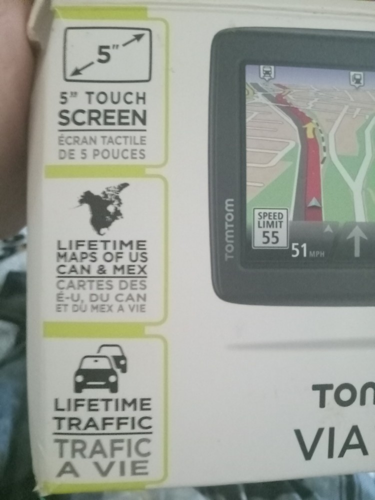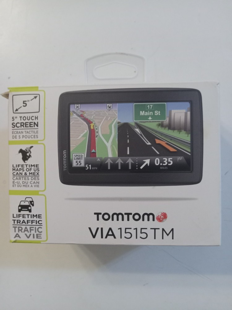 Tomtom Via 1515tm - U.S, Canada & Mexico Lifetime Map & Traffic Updates Used but like new, still with box, car mount, car charger, cord for wall charger and 16gb micro SD card