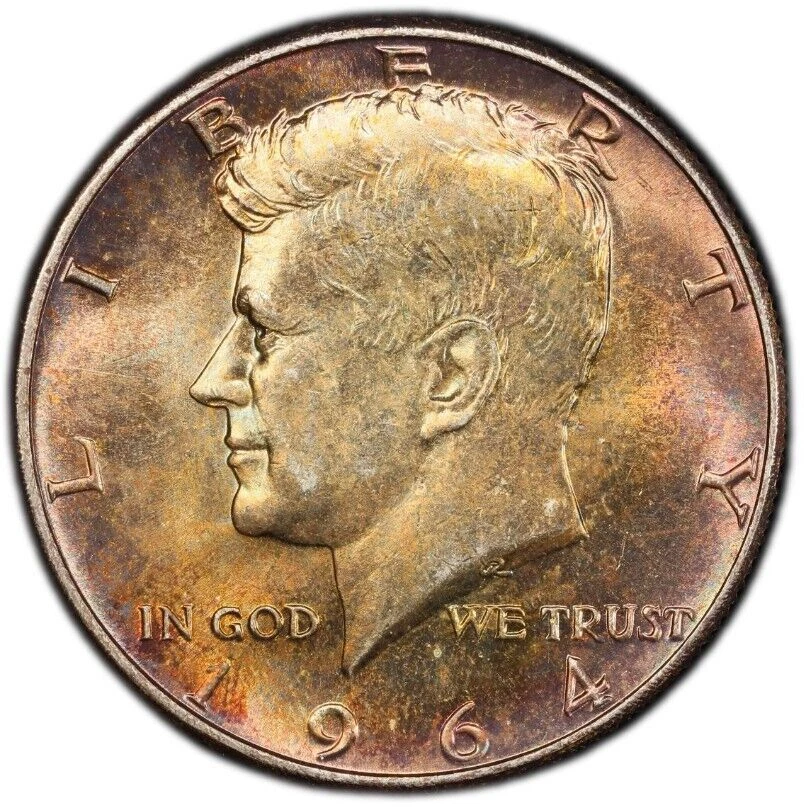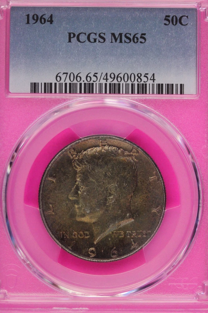 Toned 1964 P Silver MS 65 John F Kennedy Silver Half Dollar PCGS Graded 322