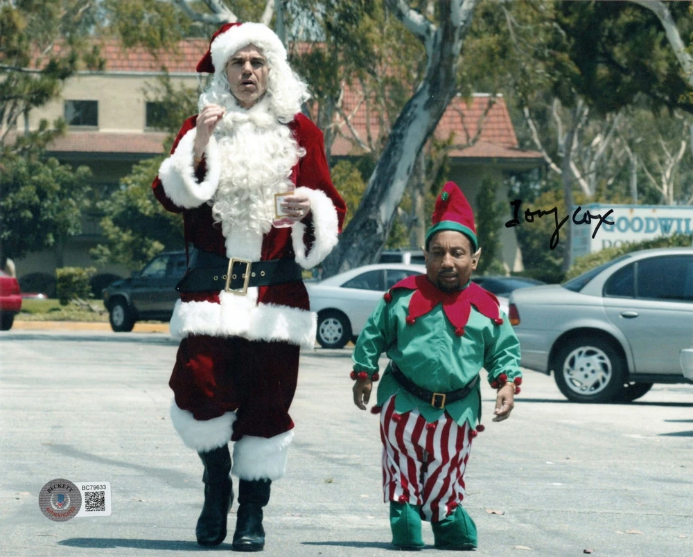 This autographed photo of Tony Cox alongside Billy Bob Thornton from the movie "Bad Santa" is a must-have for fans. The item comes with a Beckett Certificate of Authenticity, ensuring its genuineness. The picture is framed for display, providing a professional and elegant look. • Tony Cox Autograph • Billy Bob Thornton • Beckett Certificate of Authenticity • "Bad Santa" Movie Scene • High-Quality Photo • Memorable Collectible • Framed and ready to hang or display • Print Dimensions: 8X10 inches • Frame Dimensions: 9X11 inches Condition: New