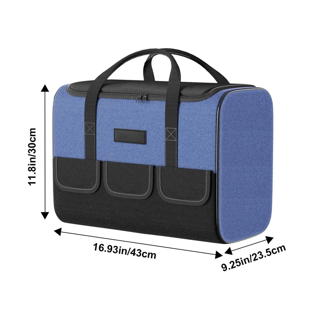 Product Description Bout this item: 👷♂️ Keep Your Tools Organised: with our tool bag designed for DIY enthusiasts and craftsmen. This tool bag is perfect for storing and organising your tools and materials. 👷♂️ High-quality Materials And Structure: Our tool bag is made of 5 layers of 1680D Oxford fabric, providing excellent durability and stability. Waterproof, finely stitched, and able to withstand heavy use. 👷♂️ Large Space and Multiple Pockets: Our tool bag features 1 strong inner pocket and 5 outer pockets, providing ample space to store various tools and materials. It is robust and versatile. 👷♂️ Multifunctiona Tool Bag : Ideal for DIY enthusiasts and craftsmen, but also for electricians or plumbers. It offers a practical solution for storing and organizing tools effectively. Specification: Material:‎Polyester Color :Blue Size: 16.93x9.25x11.8 inch Water Resistance Level:Water Resistant Number of Compartments:5 Included Components: ‎1 Tool Bag powered by