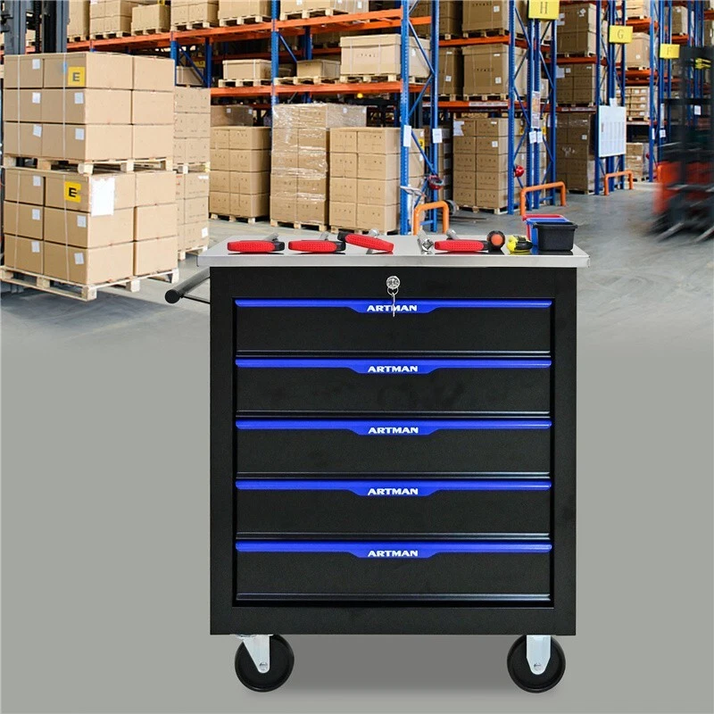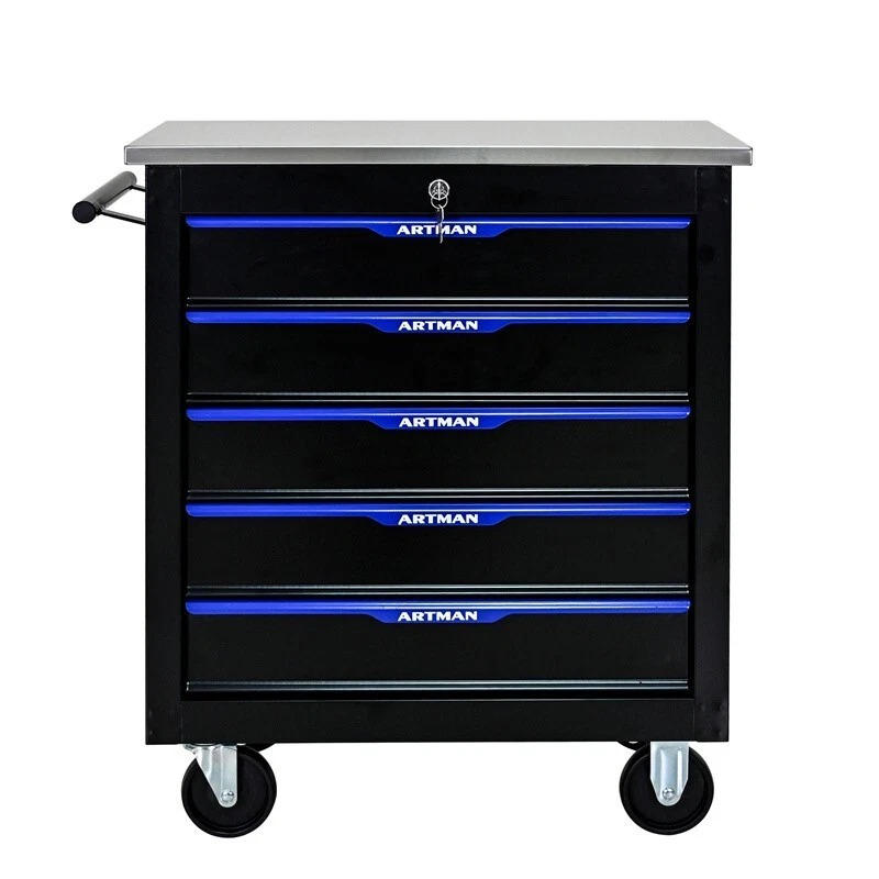 MPN: Does not apply Country/Region of Manufacture: China Features: Lockable, Wheels, With Handle Item Height: 26.46 in Brand: ARTMAN Finish: Powder Coating Size: Medium Type: Tool Cart Item Weight: 58.86 lb Color: Black+Blue Number of Drawers: 5 Material: Steel Item Length: 25.91 in Number of Items: 1 Item Width: 13.58 in
