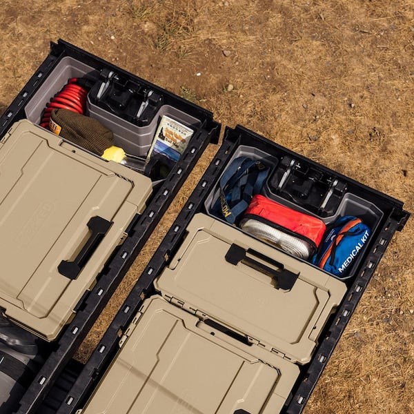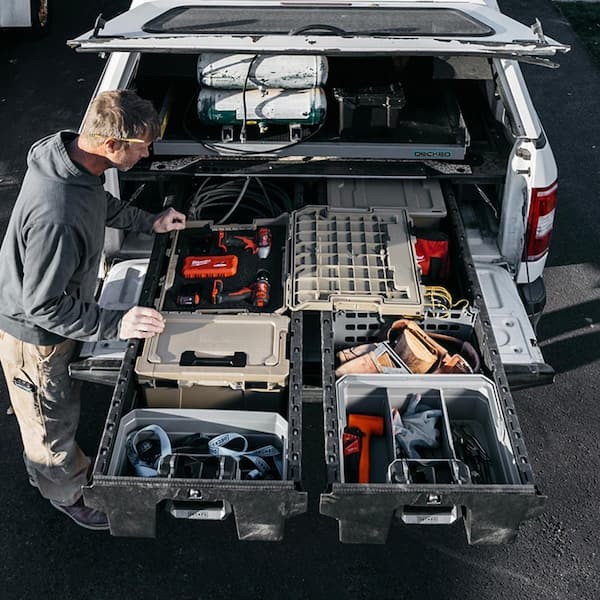 The Drawerganizer is the molded version of ultra-comfy boxer briefs. It's an accessory that gently cradles all the loose bits rolling around chaotically inside your DECKED drawers. It nests into the handle end of your drawers creating a handy, useful storage space for small tools, hardware, bug spray, duct tape, etc.