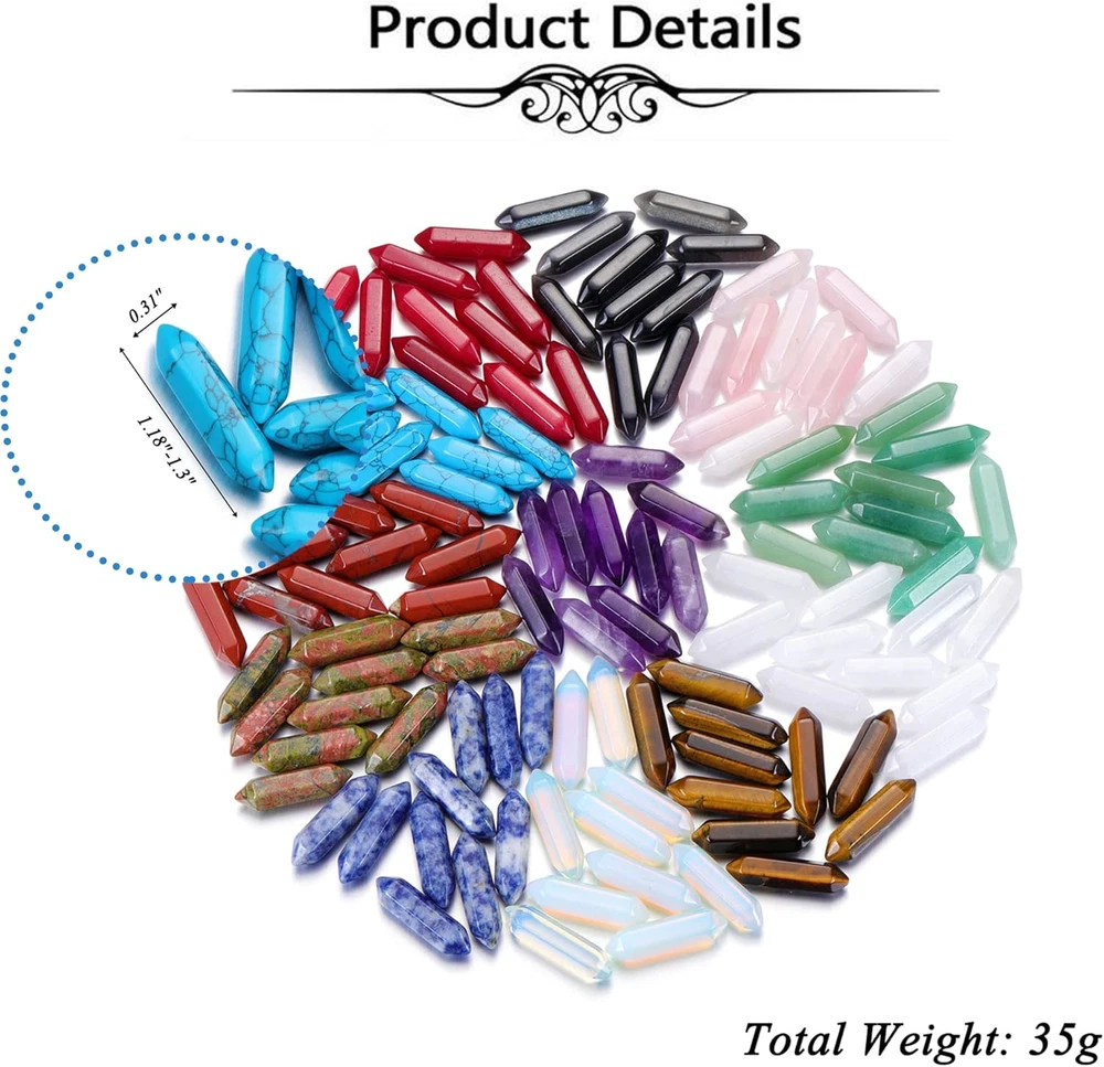 HEALING CRYSTALS STONES: Total 10pcs crystals points one set, 12 crystal materials available, crystals point size: 1.18"*0.31". Suitable for those who are just beginning to experiment with healing crystals, yoga lover, crystal gemstone collector. OPAL CRYSTALS: Opal was once considered as a symbol of rights in ancient Rome and a gem of geniuses. It can strengthen personal abilities and talents, help people gather wealth and make money at the same time. HEALING ENERGY: Finely tuned crystal healing wands are more powerful than healing crystals as they double the healing powers. These energy tools help focus the energy of the crystal on your goals and aims using the potent vibrations radiated by crystals. Widely used throughout history, crystal wands are used to ground your intentions, focus, and ambitions. MULTIFUNCTION CRYSTALS: Healing crystals 6 facets smooth polished wands, great to use in healing, reiki, meditation, match with 7 chakra grid or display in your home, office desk decor. You can also DIY crystal jewelry items like crystal pendant necklace or as gift given. WONDERFUL CRYSTALS GIFTS: This crystals set come with an exquisite velvet bag and gift box, is a great crystals healing gift for your family, friends and lover on Birthday, Valentine???s Day, Mother???s Day, Anniversary and etc.