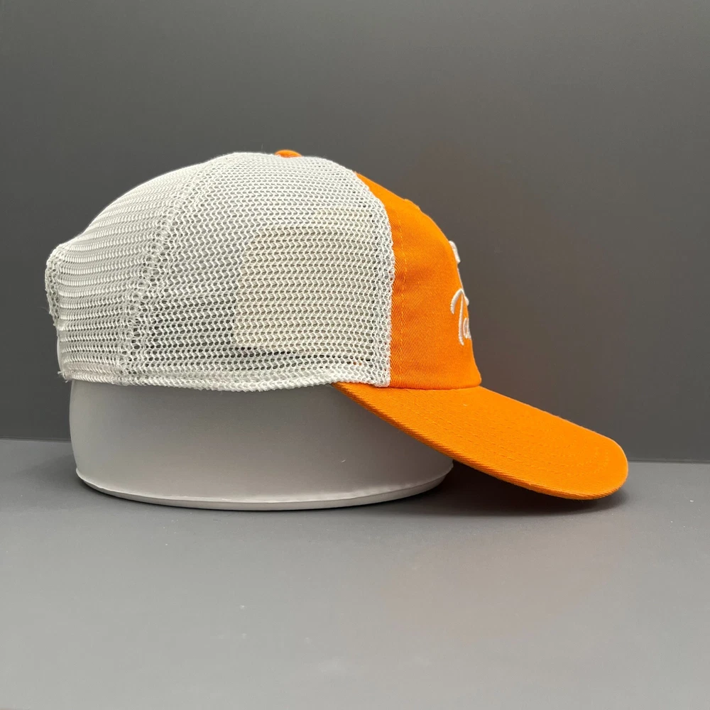 PRODUCT DESCRIPTION Show Your Volunteer Pride Support the Tennessee Volunteers with this vibrant Top of the World Trucker Cap . Featuring the iconic "T" logo with "Tennessee" script embroidered on the front panel, this cap is a must-have for any fan. The bright orange crown and brim, combined with a white mesh back, make this cap both stylish and breathable, perfect for cheering on your team or casual wear. Brand & Features Brand: Top of the World "T" logo with "Tennessee" script embroidery Bright orange crown and brim White mesh back for breathability Adjustable strap-back closure for a custom fit Perfect for Tennessee Volunteers fans and college sports enthusiasts Specifications: • Team: Tennessee Volunteers • Style: Adjustable Mesh Back Baseball Cap (Trucker Style) • Crown Color: Bright Orange • Brim Color: Bright Orange • Back Panel: White Mesh • Material: Cotton and Polyester Blend • Closure Type: Adjustable Strap-back • Sport: NCAA College Football • Fit: OSFM (One Size Fits Most) ABOUT US Hat Stack - Your trusted source for authentic headwear. We offer a wide range of premium caps designed to enhance your casual wardrobe. Warranty & Authenticity We guarantee quality and satisfaction with every purchase. DELIVERY All orders are processed within 1 day. We ship via SpeedPak Standard with an estimated delivery time of 7-19 days. Keywords Tennessee Volunteers, Top of the World, NCAA Cap, Trucker Cap, Mesh Back Cap, Adjustable Cap, Baseball Cap, Bright Orange Cap, Embroidered Logo, College Football, Sports Cap, Casual Headwear, Volunteers Merchandise.