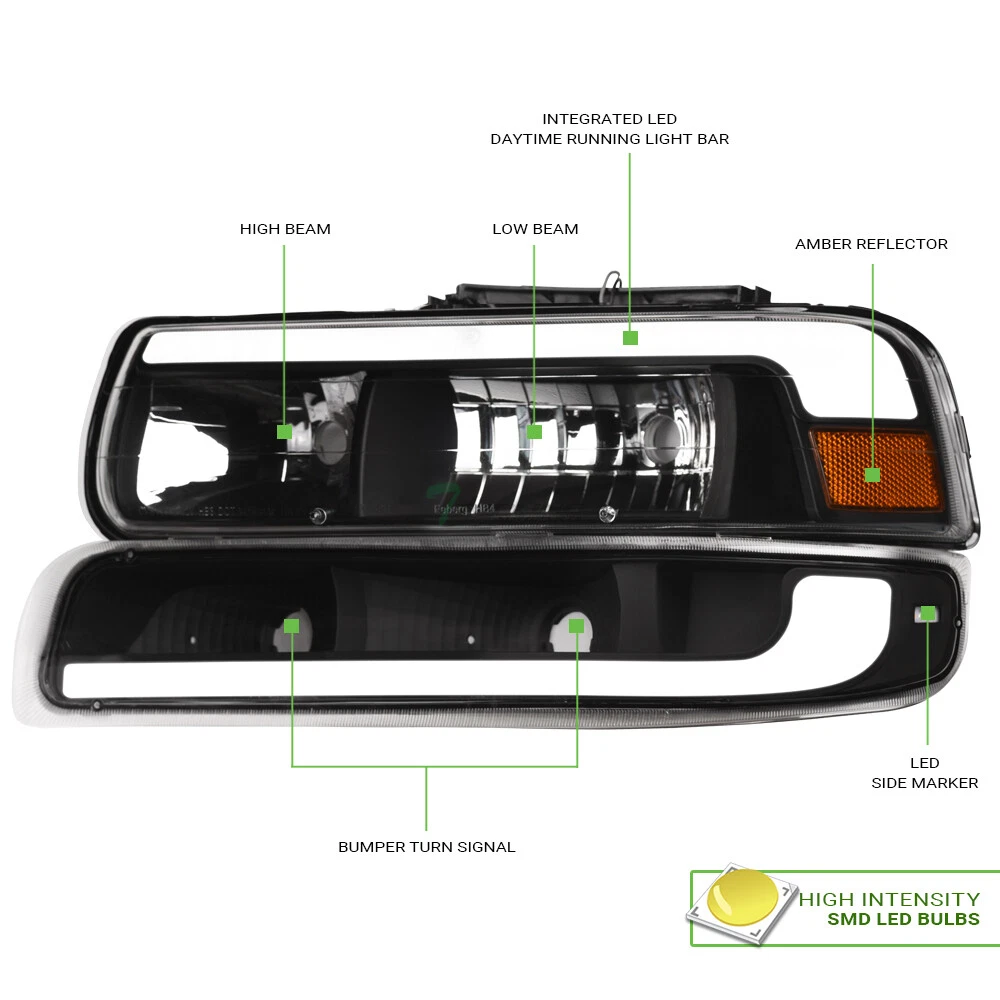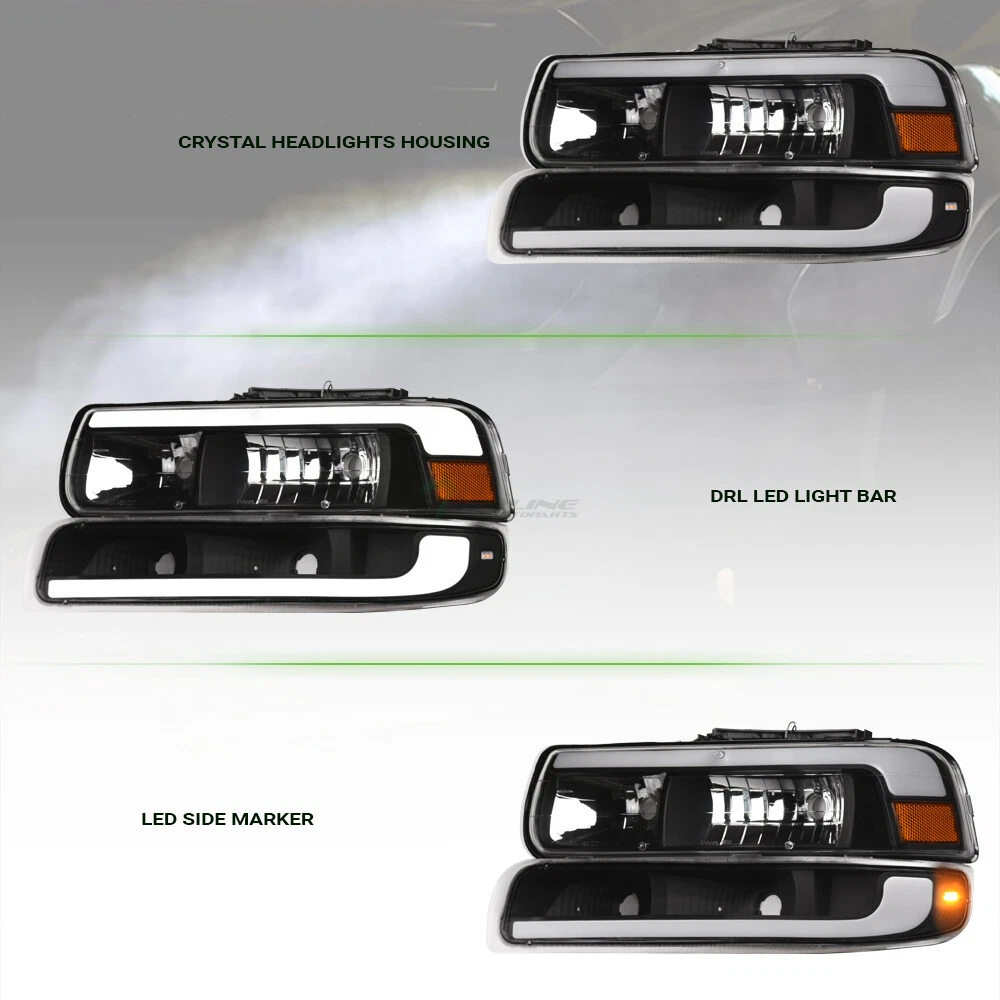Powered by Frooition Save up to 5% daily deals shop now Topline For 99-02 Silverado/00-06 Suburban/Tahoe LED Strip Headlights+Bumper Blk Topline For 99-02 Silverado/00-06 Suburban/Tahoe LED Strip Headlights+Bumper Blk Part Number: hlnb-sil994plbw-jdma-201 Description Description Payment Shipping Return & Refund Feedback Description Item Description Application For 1999-2002 Chevy Silverado All Models 2000-2006 Chevy Suburban All Models 2000-2006 Chevy Tahoe All Models Description Crystal Headlights ( Comes With Bumper Lamps, 4-Pieces Combo ) Features Custom Design With Fiber Optic LED Strips New Technology High Intensity SMD LED Tube Bar Daytime Running Light Can Be Help Other Road Users Identify & Better Visibility On Road Offers Extra Smooth & Bright Light During Day / Night Time Brings Significant Exterior Upgrade, Give Your Vehicle An Unique Look Product Details • 100% Brand New In Stock, Item Exactly As The Picture Shown • Comes With A Complete Set ( Driver & Passenger Side ) • Direct Bolt-On Replacement • Instruction Is Not Included, Highly Recommend To Install By Professional Mechanic • Modification Might Require For Using HID Lighting System • Dramatically Improve Both Styling & Appearance • Please Go Check Out Our Ebay Store For More Additional Hot Items Technical Tips : For Cars That Do Not Have Daytime Running Light ( DRL ) Function: The Lights / HALO / LED Part Can Serve As / Give Out Daytime Running Light ( DRL ) As Extra Functions But In Order For It to Work, You Might Need Modifications To The Wirings And Plugs. Additional Wirings & Plugs For Daytime Running Light ( DRL ) Function Will Not Be Provided. Please Advice Mechanics For Installation & Remember that Professional Installation Is Always Highly Recommended. Please make sure all Headlights are install properly, sockets are tightly fastened and all O-rings or rubber gaskets are in great condition. Broken or loose O-rings or rubber gaskets on your factory sockets can cause moisture in your lights ( It can damage your light bulb ). If you happen to have moisture buildup in your lights, please try the following solution. simply remove the lights from the vehicle and set out in the sun or in a dry area for at least few hours. Wait until the moisture has fully evaporated, and reseal around the seams with a clear silicone sealant on the assembly and replace any worn down O-rings or rubber gaskets. This should alleviate the condensation issue. Payment Payment Please complete the Ebay checkout within 3 days after winning. Payment is expected within 3 days after auction ends. Product availability is not guaranteed after 3 days. PAYPAL payment is for US. customer only and we only ship to PayPal confirmed address, no exception. PAYPAL payment ( in USD ) is the only payment method will be accepted for International Buyers. Insufficient payment amount or missing information will delay the process of order, please read the invoice carefully. Shipping Shipping U.S. 48 Contiguous States Shipping Service: UPS / Fedex Ground Price: $ 0 Transit Time: 1-7 Days With Tracking U.S. 48 Contiguous States ( Express Shipping Service ) Shipping Service: FedEx 2Day Price: $ 112 Transit Time: 1-3 Days With Tracking Canada Shipping Service: Fedex International Economy Price: $ 121 Transit Time: 2-5 Business Days With Tracking ( Brokerage Fee Is Included ) Alaska & Hawaii Shipping Service: FedEx 2Day Price: $ 112 Transit Time: 1-3 Days With Tracking International ( U.K. Europe, Australia Only ) Shipping Service: Not Available Price: $ Not Available Transit Time: Not Available There will be 9.5% Sales Tax on the Total sales price With Shipping Cost for California Buyers. " Free Shipping " Services, If offer, is for US Lower 48 States Buyers Only. Alaska & Hawaii will have a different Shipping rate. We accept Paypal / Credit Card payment through Ebay Checkout ONLY. We only ship to Paypal Confirmed Address as this is recommended for both buyer and seller protection. Most of the orders will be shipped out from our main warehouse CA 91789 within 24-48 hours after payment is cleared. The transit time is provided by the shipping carrier based upon the item is picked up. Additional shipping charge will be applied to reship for incorrect address entered by the buyer at checkout. We DO NOT Ship to PO Box , APO, FPO, Puerto Rico , Virgin Islands, Guam , American Samoa , Minor Outlying Islands , Northern Mariana Islands. International & Canada buyers are responsible for any possible brokerage/custom fee. Please consult with your local post office or authority for details. All International countries except CANADA. If Buyer can't find their country shipping rate in the Ebay shipping info, We apologize that we couldn't process the shipment to those countries which are not listed. Alaska & Hawaii Buyers Attention: Please only choose The Correct Shipping Method That Shown On The Shipping Table For ALASKA & HAWAII at the Ebay checkout to complete the transactions. It is the only shipping method that we provide for customers on U.S. territories outside the lower 48 states. Wrong shipping method selected will put the order on hold for insufficient shipping fee paid. There are shipping size limitation on certain items such as body parts that we are not be able to ship to AK/HI. Please feel free to contact us prior to bidding. We do provide Combined Shipping Discount, Buyer would receive a 10% shipping fee discount after the highest shipping fee is paid full. For example, if shipping fee on first item is $20, shipping fee on the second item is $10. Then the total shipping fee would be $20+ 0.9 x $10 = $29 for the combined shipping fee etc. Return & Refund Return & Refund Since all our products are sold "brand new", all damaged products are considered damage during transit. Please inspect and hand-fit all items by the time it arrives. Customer MUST contact us within 7 days after the date of package arrived via email for all claims of shipment damage, defects