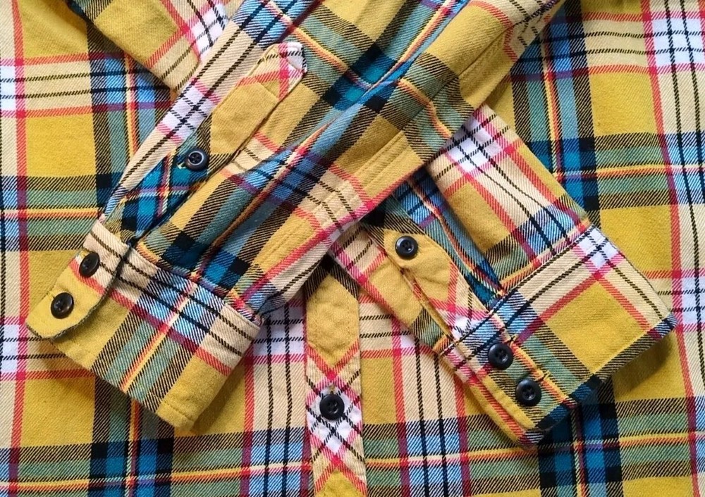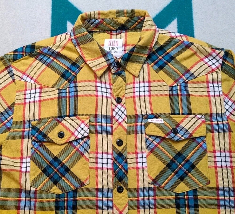Topo Designs Colorado Yellow Plaid Long Sleeve Flannel Button-Up Shirt in Large
