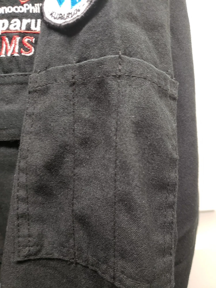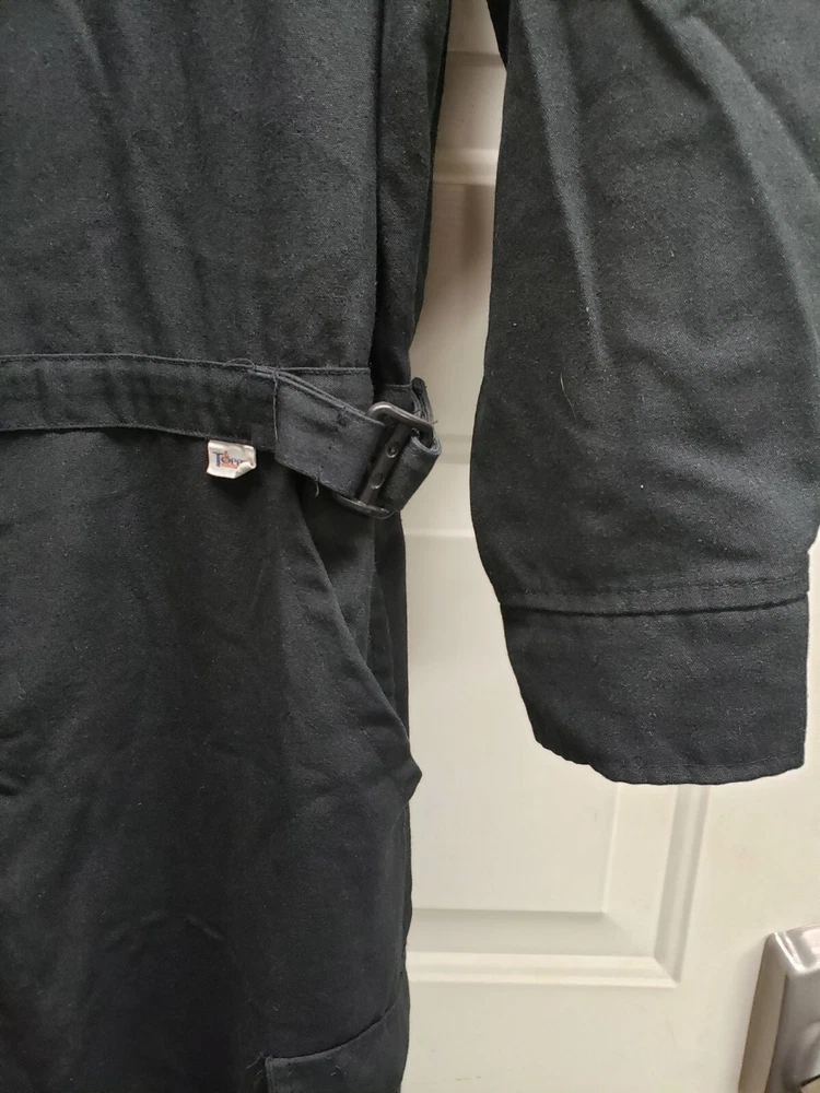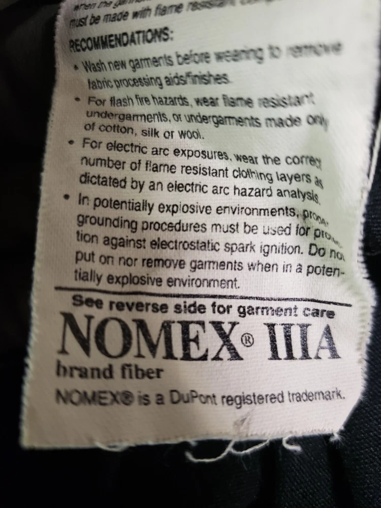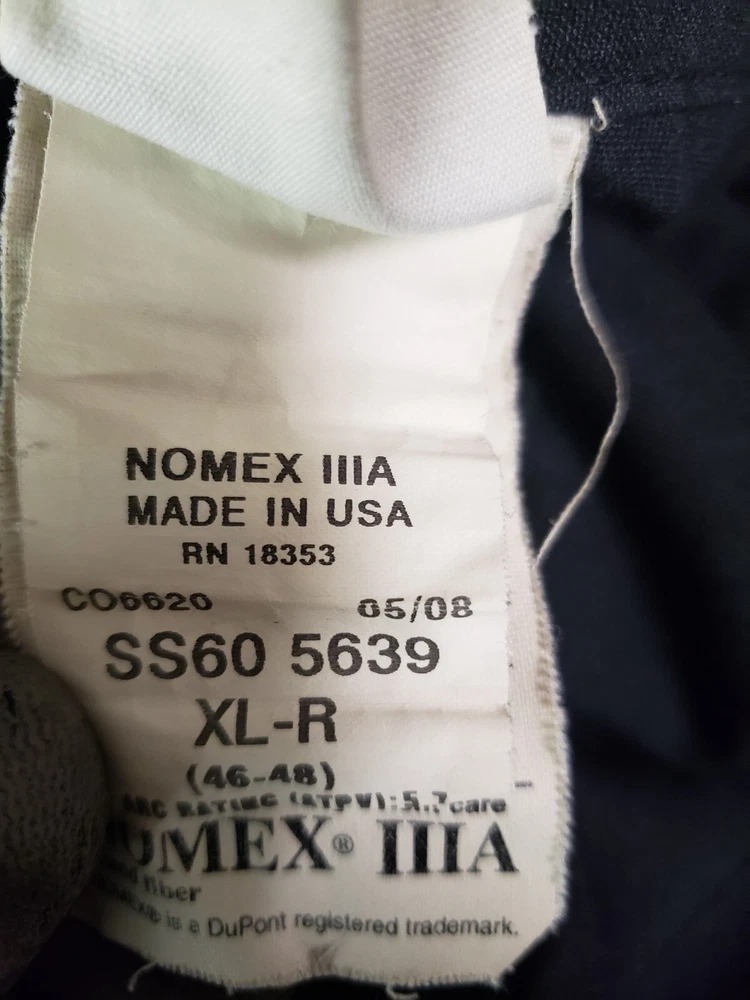 This is a nice set of Nomex coveralls, lots of pockets, leg zippers, double front zipper. Patches sewn on. Does have a name embroidered under that piece of blue tape. No rips or stains. These are from 2008. Positive feedback will be left once feedback is received.