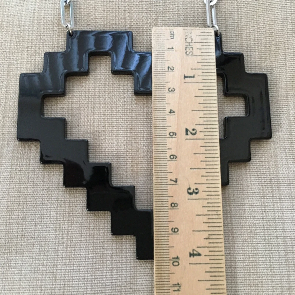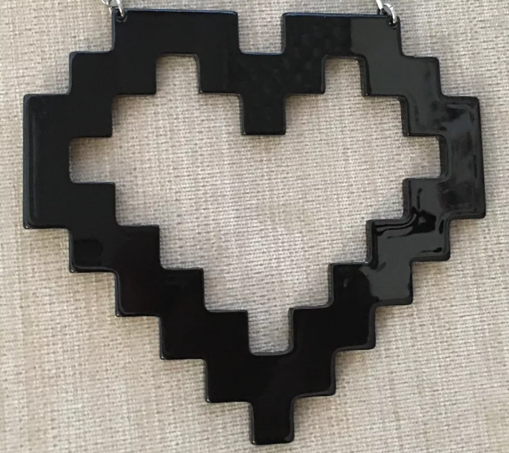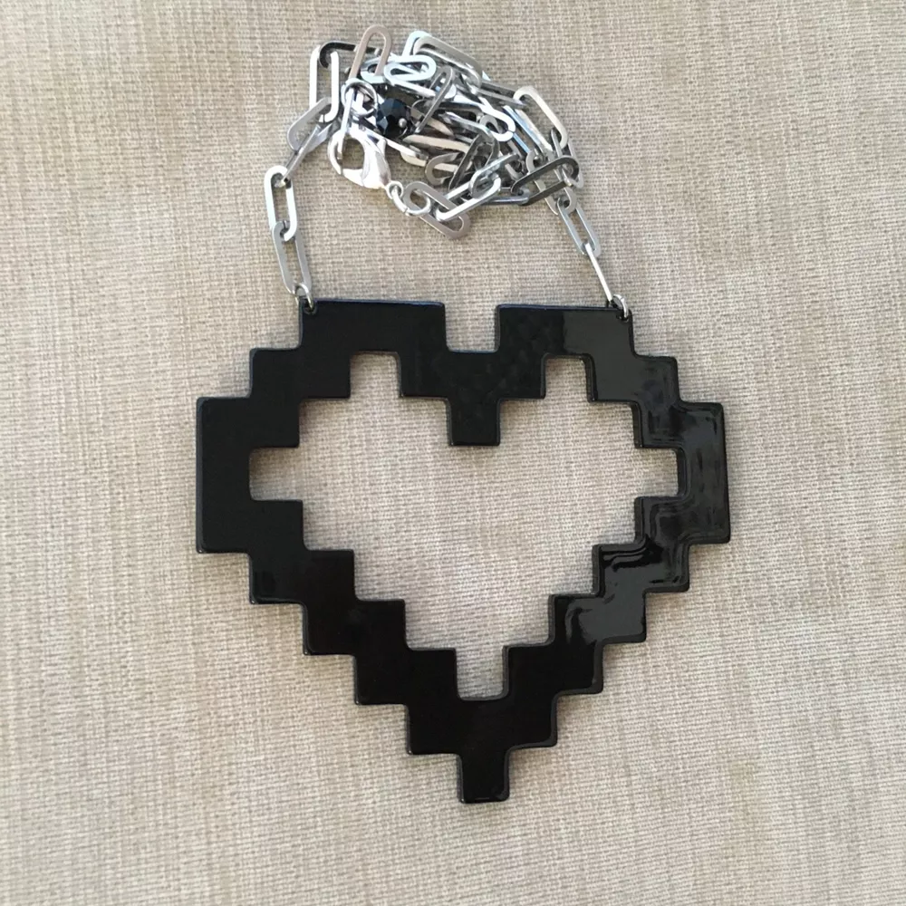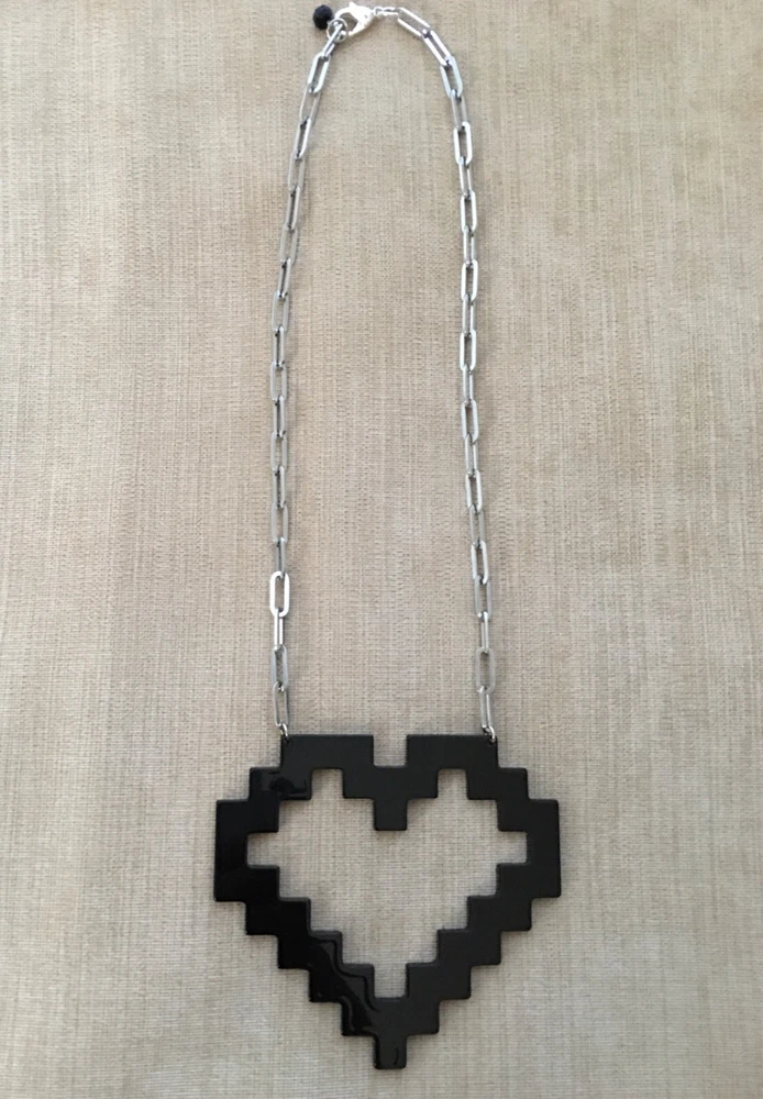 Large Pixilated BLACK HEART Stainless Steel Chain Modified and upgraded; added new stainless steel chain. *** Original necklace purchased at TopShop. Adjustable. Max length: 20 inches.