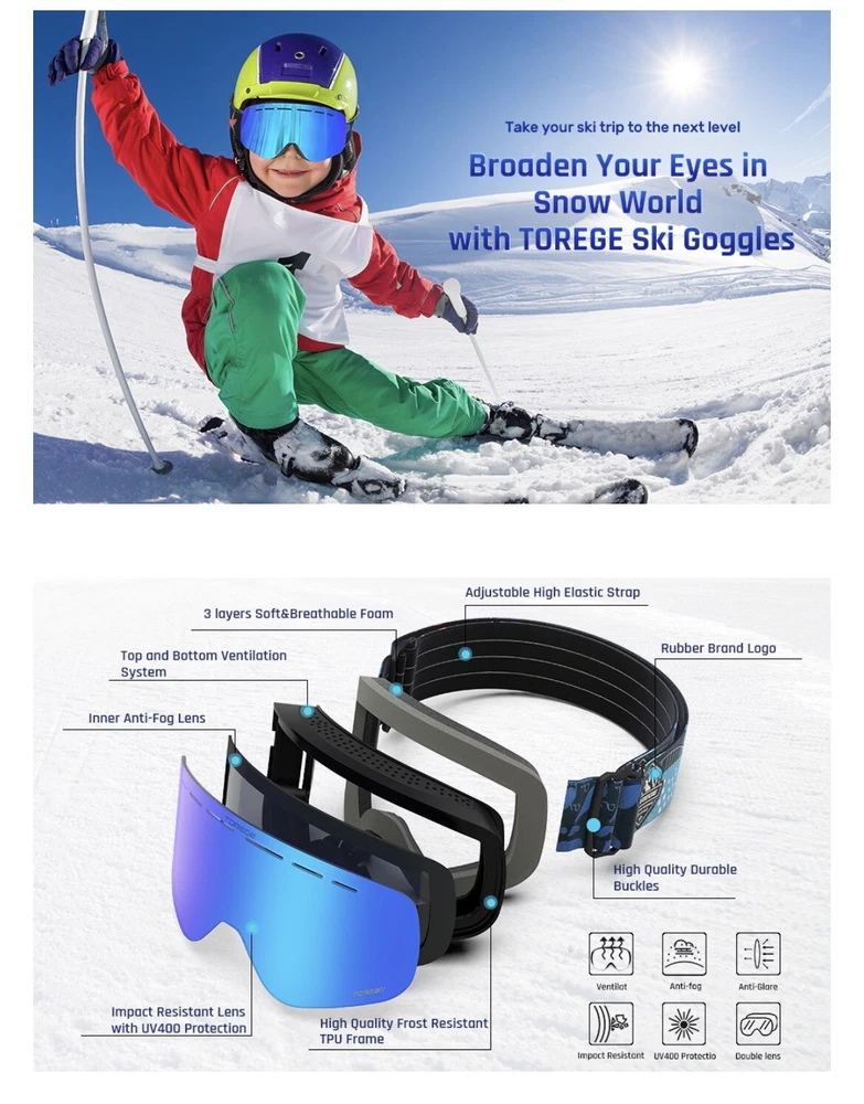 TOREGE Ski Goggles Anti Fog Dual-Layer Snowboard Goggles Kids 3-6 Years Old. See all photos. New in box. Kids 3-6 years old.