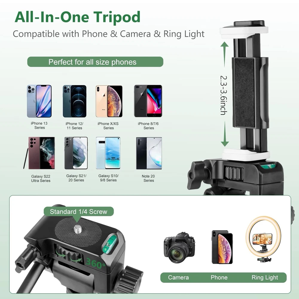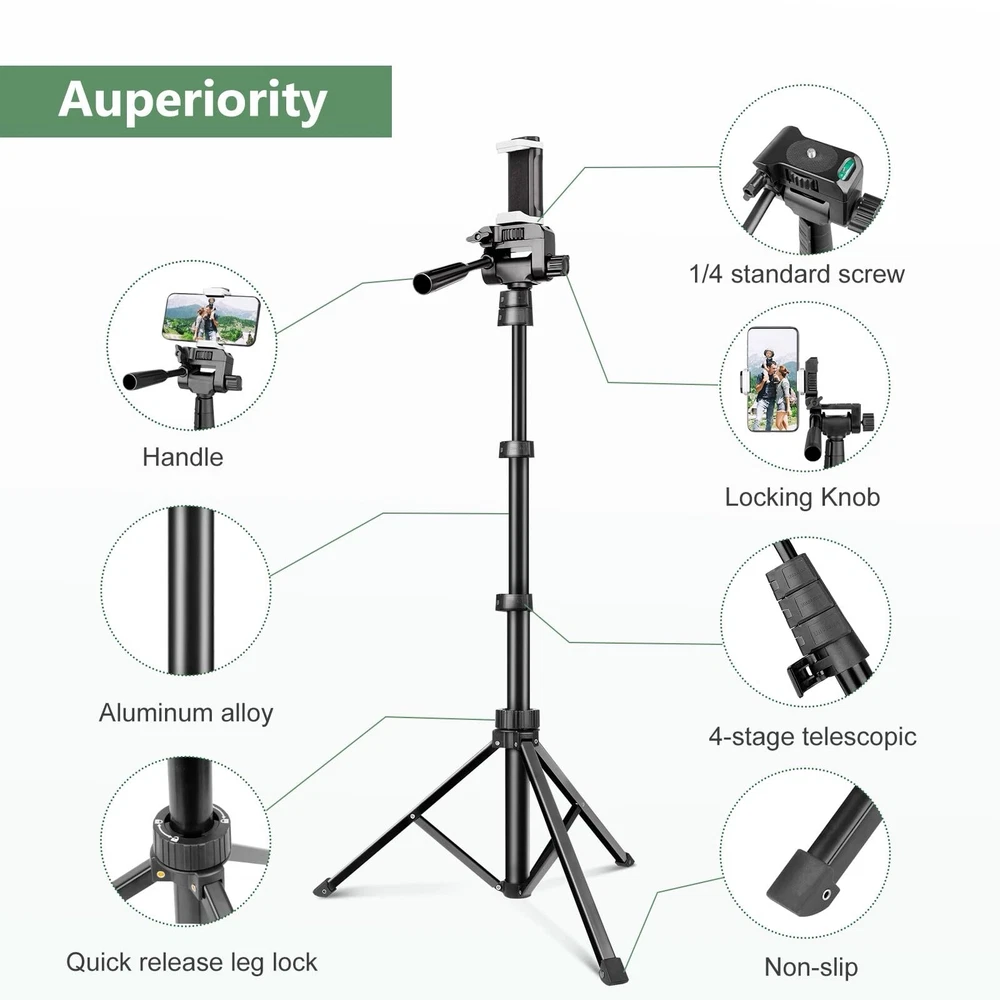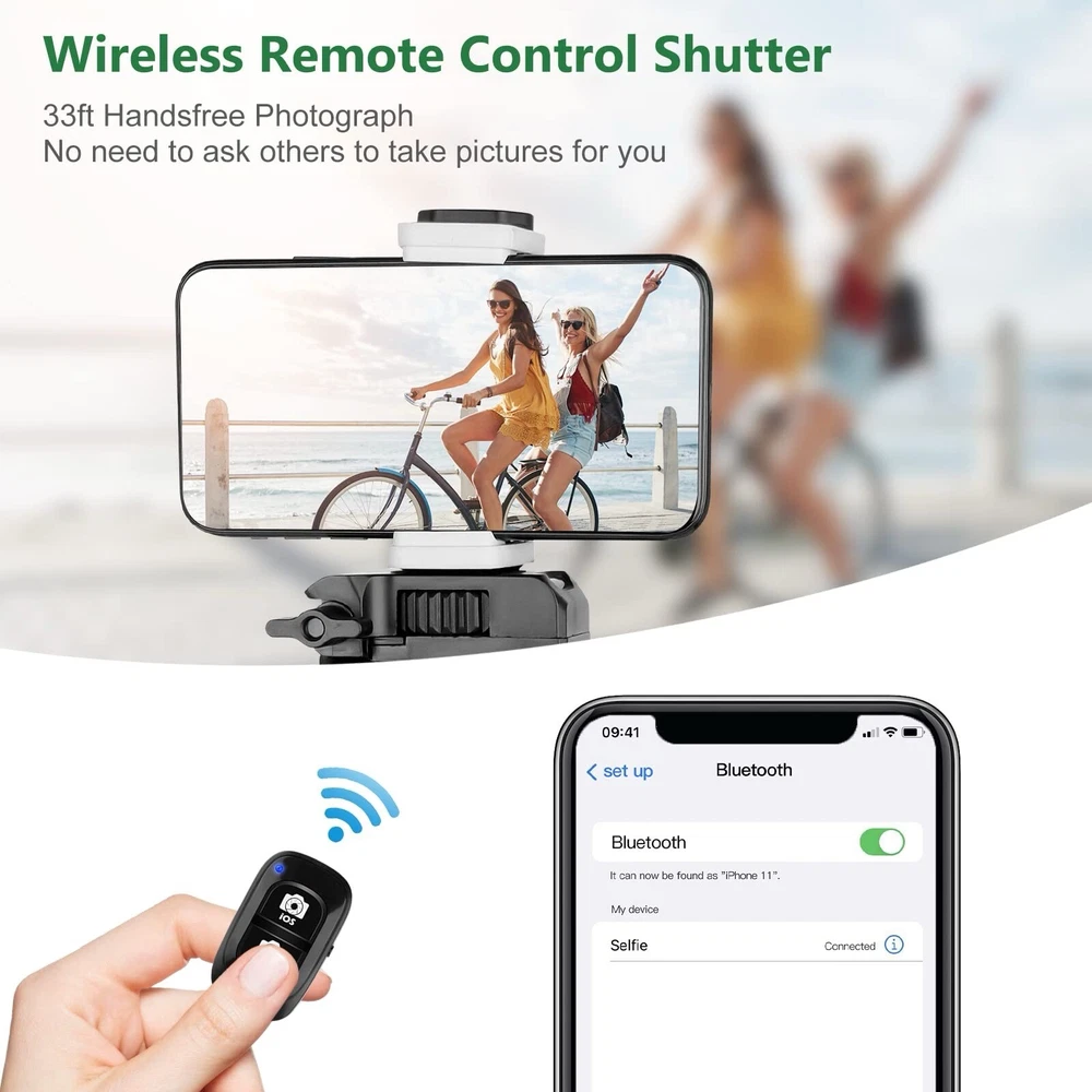 Item Height:62”gtin13:Does Not ApplyType:TripodMounting Location:GroundColor:BlackFeatures:Lightweight, Bluetooth Remote, StableMounting Type:GripCompatible Brand:Universal, For AppleNumber of Ports:3UPC:Does Not ApplyMaterial:AluminumBrand:TorjimItems Included:Remote
