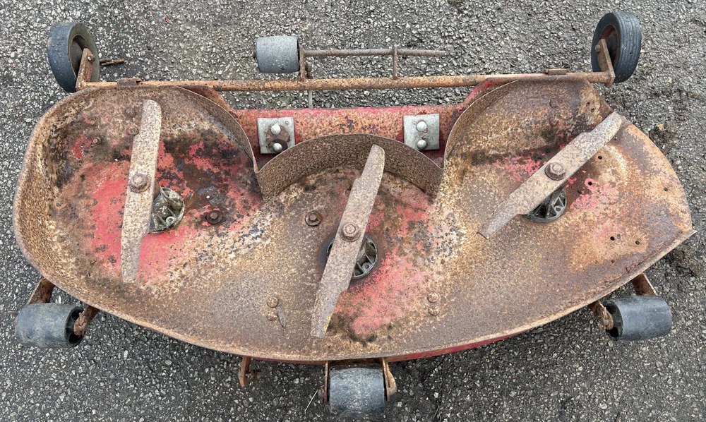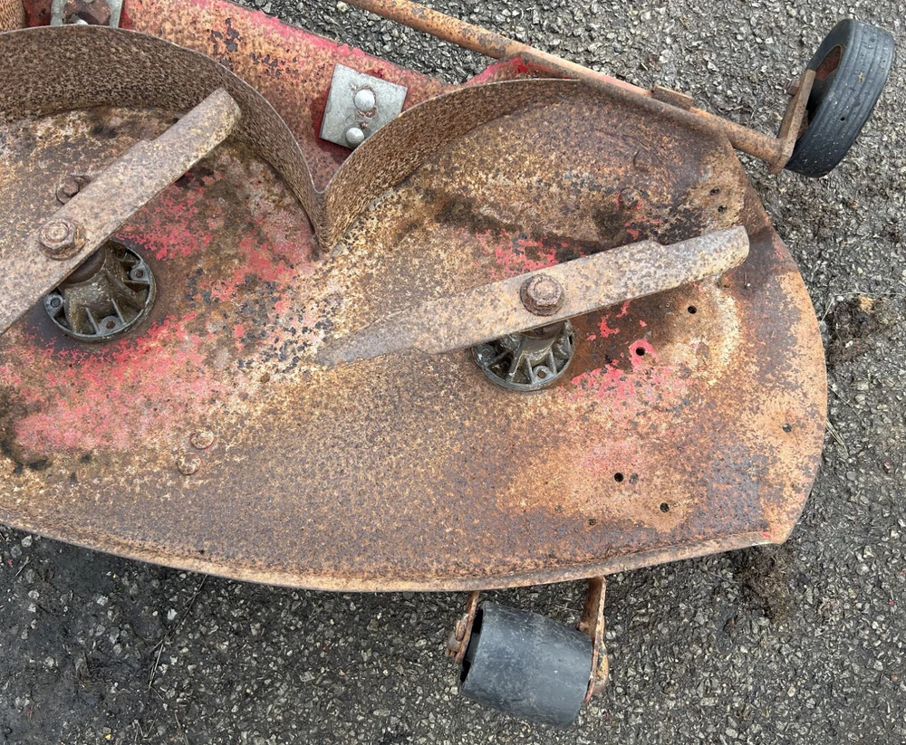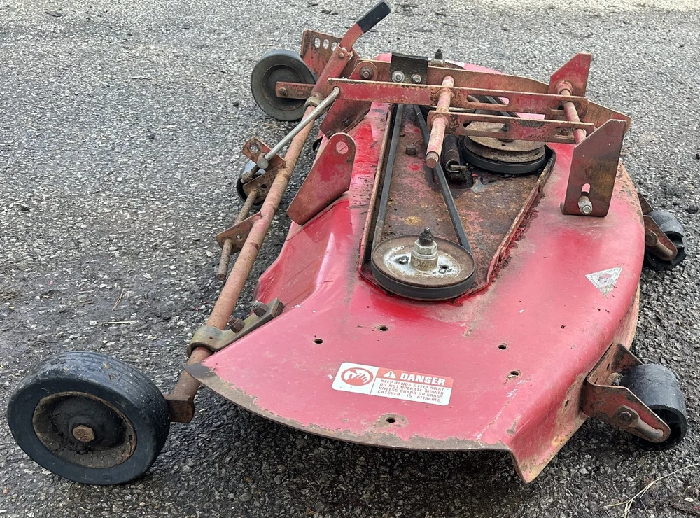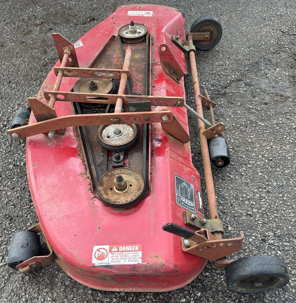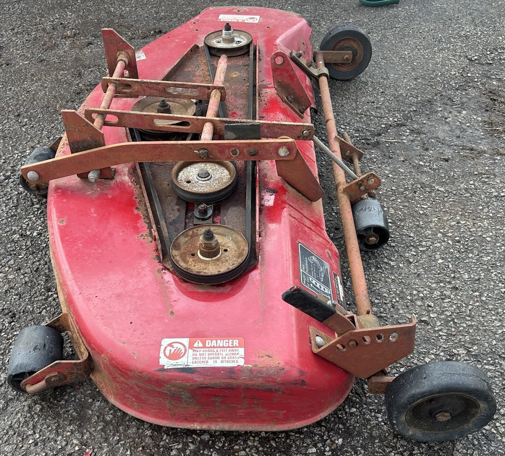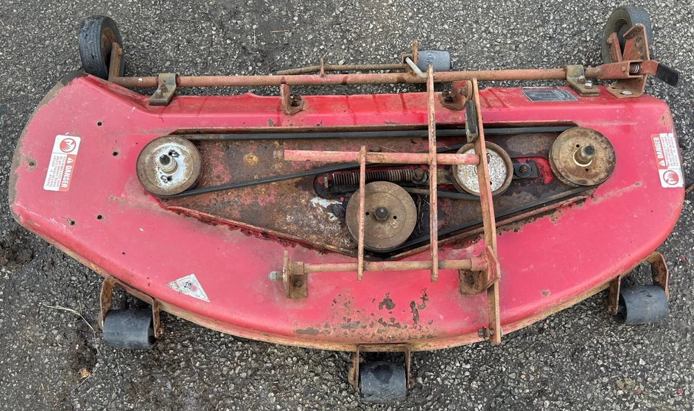 This is a 48" working mower deck model 05-48MS05 from a 1988 Toro Wheel Horse 414-8 model 31-14K803 garden tractor which is being parted out. Blade spindles and pulleys all spin freely. Includes sharpenable blades and belt. This assembly fits other model tractors including all Series 300 and 400 models. Pics are of the actual assembly for sale and show everything included. I've also included a short video of me tugging the included belt and spinning each spindle and pulley. Compare model numbers to ensure fit and compatibility or inquire for fast and friendly assistance. Flat rate UPS Ground shipping of $125 is available to the lower 48 states only. Others please inquire for a shipping quote. We will try our best to get it on the UPS truck within 24 hours of purchase, but allow up to 3-day handling on mowers decks which ship wrapped in stretch wrap, bubble wrap and plastic tape. Rear gage wheel assembly will be removed and boxed and shipped separately. It doesn't always take 3-days to ship, depending on staffing and work flow in the garage. Message me for additional info and deals on multiple parts. I'll make sure you get everything you need. I part out Toro and many other brands of lawn and garden tractors and zero turn mowers. If you don't see a related part you need feel free to message and I'll let you know if I still have it and at what bargain price. If you need only a specific part or parts from any assembly for sale, message me and I will consider pulling that part for you at a reduced price and reduced shipping cost.