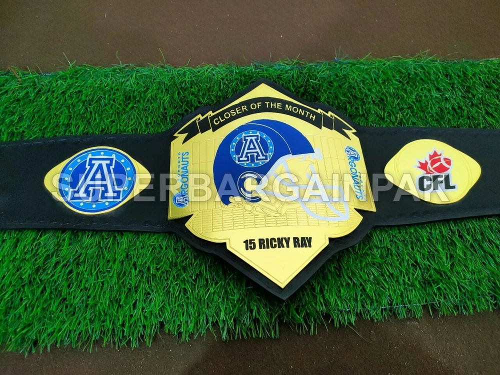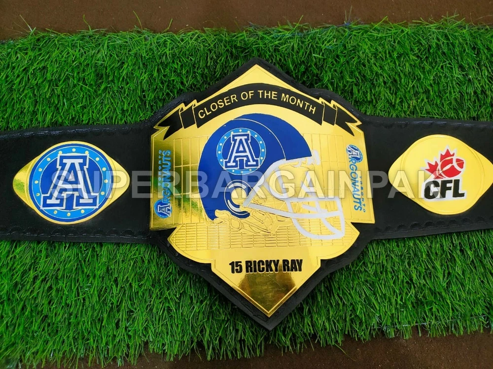 Welcome to our shop ------------------------------------------- We are specialist in manufacturing handmade products:: Our wide range of products include: >>>>Championship Belts WWE | WWF | AEW | UFC | WBC | WCW Product Description *** Toronto Argonauts Championship Belt 2MM Brass *** Plate Metal: Brass (Zinc available on request with additional cost) Strap: 100% Leather Largest Waist Size: Fits upto 46'' Belt Length: ~50" Weight: 4.17 lbs | 1.81 Kg Plate Thickness: 2mm (4mm Version available on demand with additional cost) ::The belt is well crafted and manufactured to meet the quality demands of fans:: Get your hands on this marvelous piece now! Note: If you need further details kindly inbox us, we will try to be as responsive as possible. ------------------------------------------- Return Policy: Generally we don't have much complains on our products and we make sure to 100% satisfy our clients. We send the product in well Bubble Wrapped packaging so there is highly unlike chance of getting damaged item. In case there is a damage, we will try to give partial refund or you can ask for full refund within 30 days after returning the belt to origin. NOTE: 1. If you have placed the order by mistake or you have purchased a wrong item then we are not going to refund that. 2. Buyer will pay the shipping fee of returning the belt. ------------------------------------------- Happy Shopping! :)