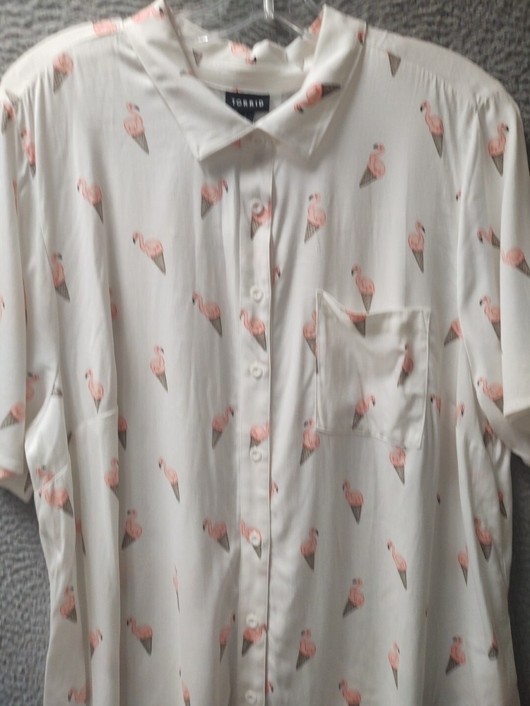 Torrid Shirt Womens 2XL Pelican Print Short Sleeve Button Up Blouse Top NWT