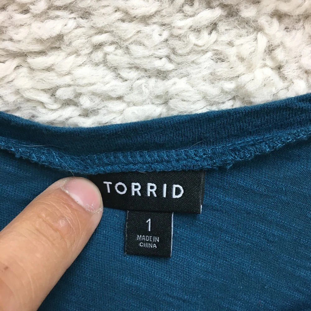 Neckline: V-Neck Pattern: Solid Department: Women Garment Care: Machine Washable Color: Blue Size Type: Plus Fit: Regular Season: Fall, Spring, Summer, Winter Sleeve Length: 3/4 Sleeve Material: Cotton, Nylon Theme: Classic, Designer Size: 1X Features: Breathable, Lightweight gtin13: Does not apply Closure: Pullover UPC: Does not apply Sleeve Type: Casual Sleeve Type: Blouse Fabric Type: Lace Occasion: Casual, Travel Seller Notes: “Good Used Condition. Please, See Pictures for Full Condition and Measurements.” Brand: Torrid Style: Basic Country/Region of Manufacture: China