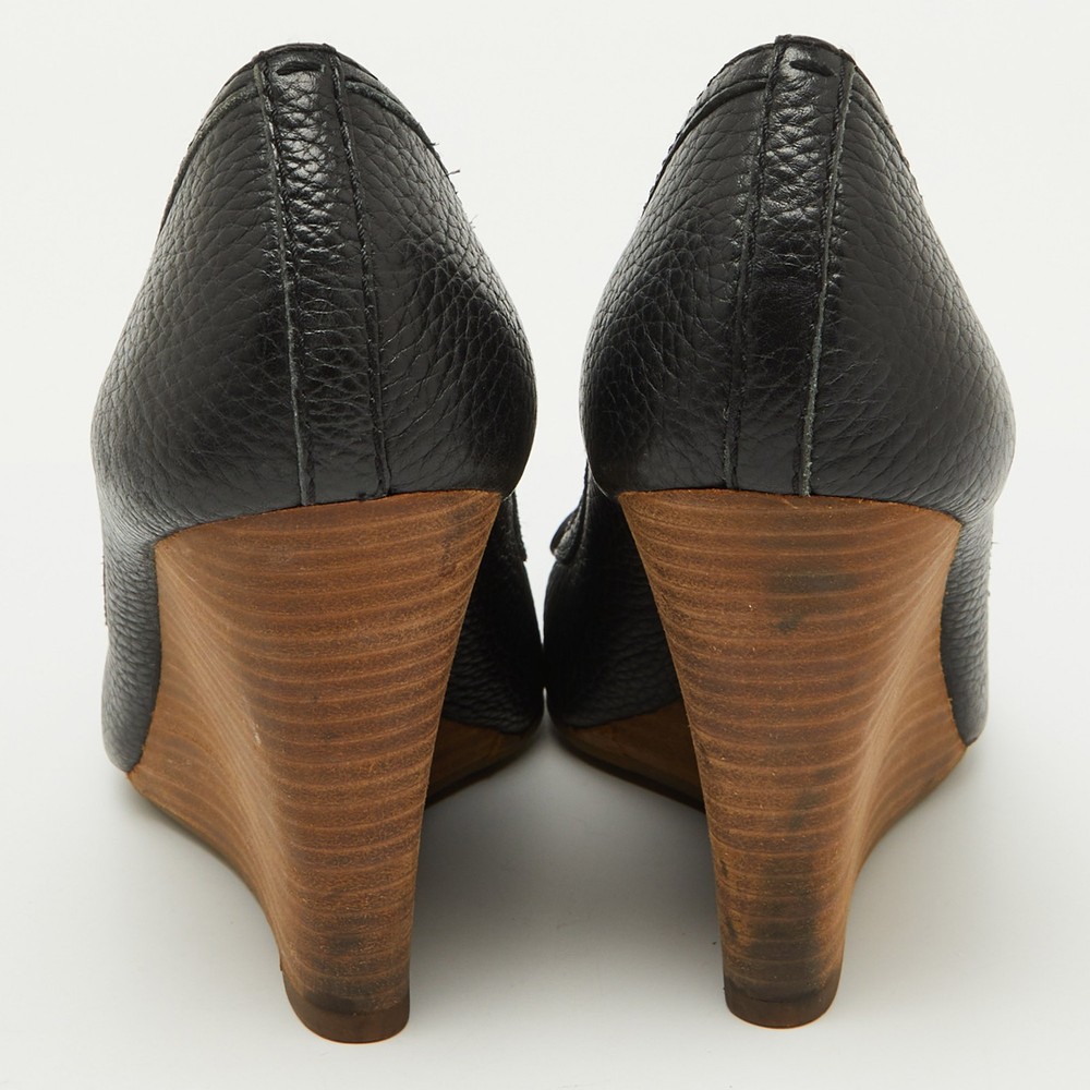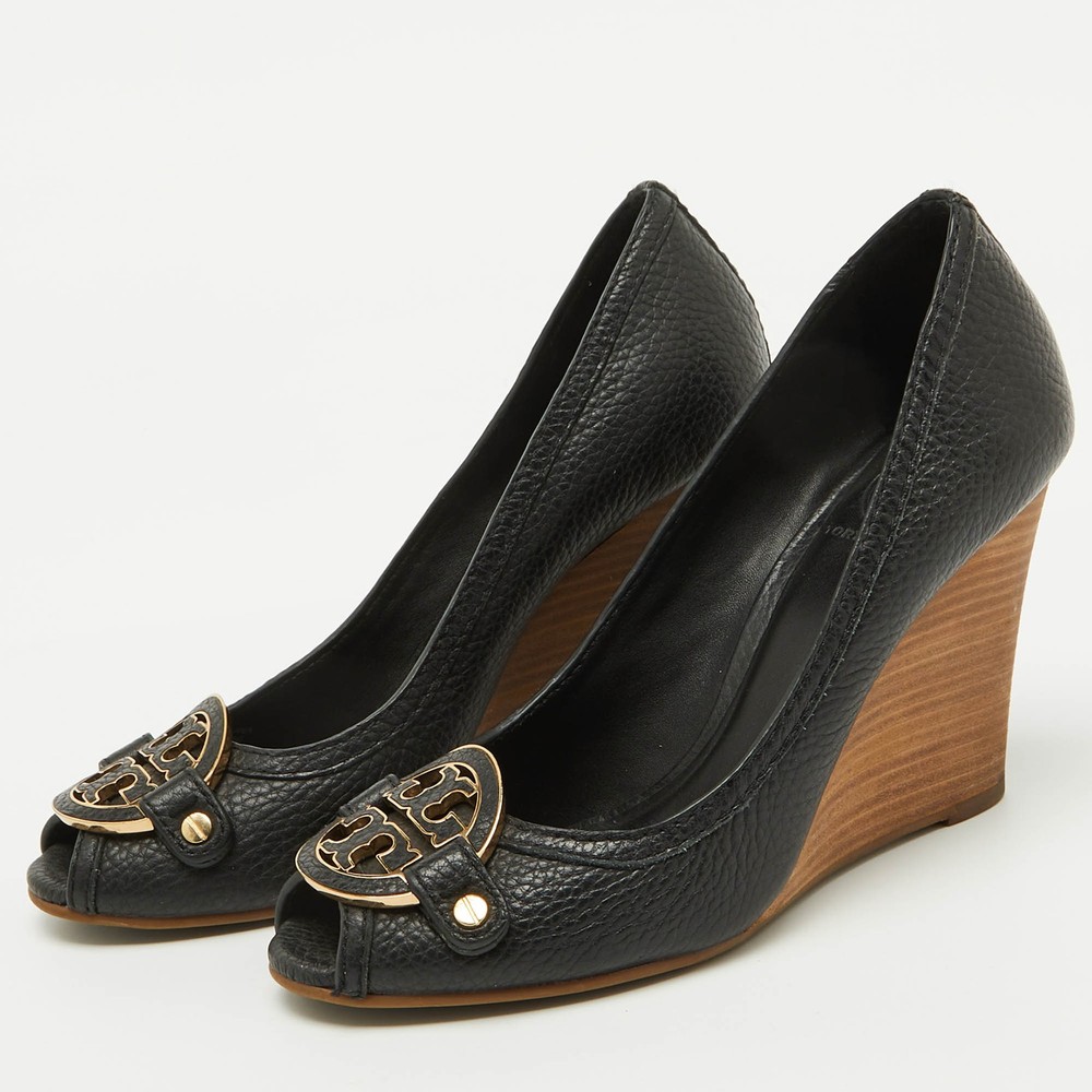 These Tory Burch pumps are a perfect blend of style and practicality, featuring black leather with a peep toe design. The iconic Tory Burch logo embellishes the front, adding a touch of sophistication. With a comfortable wedge heel, they’re ideal for both office wear and casual outings.Certified by The Luxury Closet - This item has gone through a detailed authentication process overseen by our experts. We offer a lifetime guarantee of authenticity on all our items. Import duties, taxes and charges are not included in the item price. These charges are the buyers responsibility. Please check with your country’s customs office to determine what these additional cost will be prior to buying. Our eBay Store About Us Contact Us Add to Favorite Sellers Tory Burch Black Leather Logo Peep Toe Wedge Pumps Size 38 $166.1 These Tory Burch pumps are a perfect blend of style and practicality, featuring black leather with a peep toe design. The iconic Tory Burch logo embellishes the front, adding a touch of sophistication. With a comfortable wedge heel, they’re ideal for both office wear and casual outings. Product Details Brand Color Black Dimensions Material Leather Size 38 Outsole Width 8 cm Outsole Length 24 cm Heel Height 10 cm Includes The Luxury Closet Packaging Certified by The Luxury Closet This item has gone through a detailed authentication process overseen by our experts. We offer a lifetime guarantee of authenticity on all our items. How We Check The in-house team of experts at The Luxury Closet is highly trained to verify the authenticity and the condition of the luxury products. They ensure that only 100% authentic items are put on sale.The evaluation process is unique with its own mix of assessment criteria and differs according to the category. Each item is evaluated based on the following combination of hallmarks, hardware, stitching, symmetry, material, craftsmanship, stamping, codes, hologram stickers, and packaging. Our authenticators also check if the items have been modified or amended (e.g., aftermarket diamonds, replaced batteries, repaired bags, etc.) International Buyers Import duties, taxes and charges are not included in the item price. These charges are the buyers responsibility. Please check with your country’s customs office to determine what these additional cost will be prior to buying.