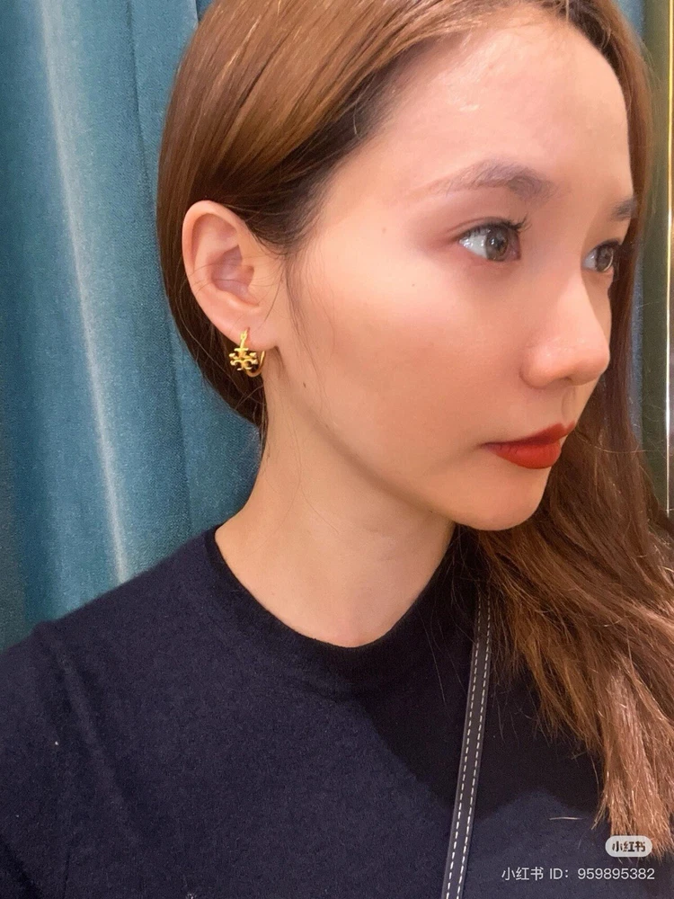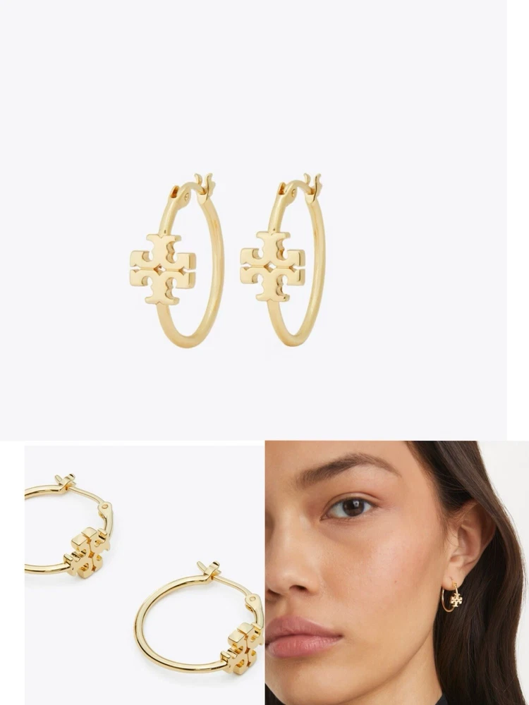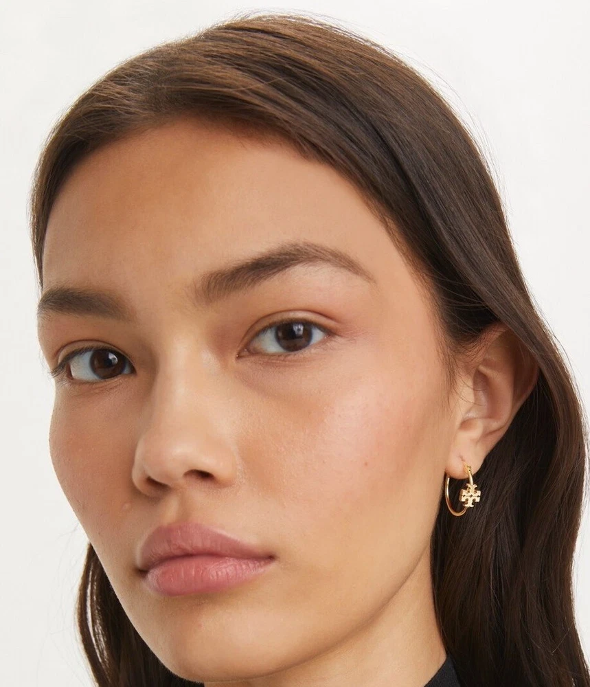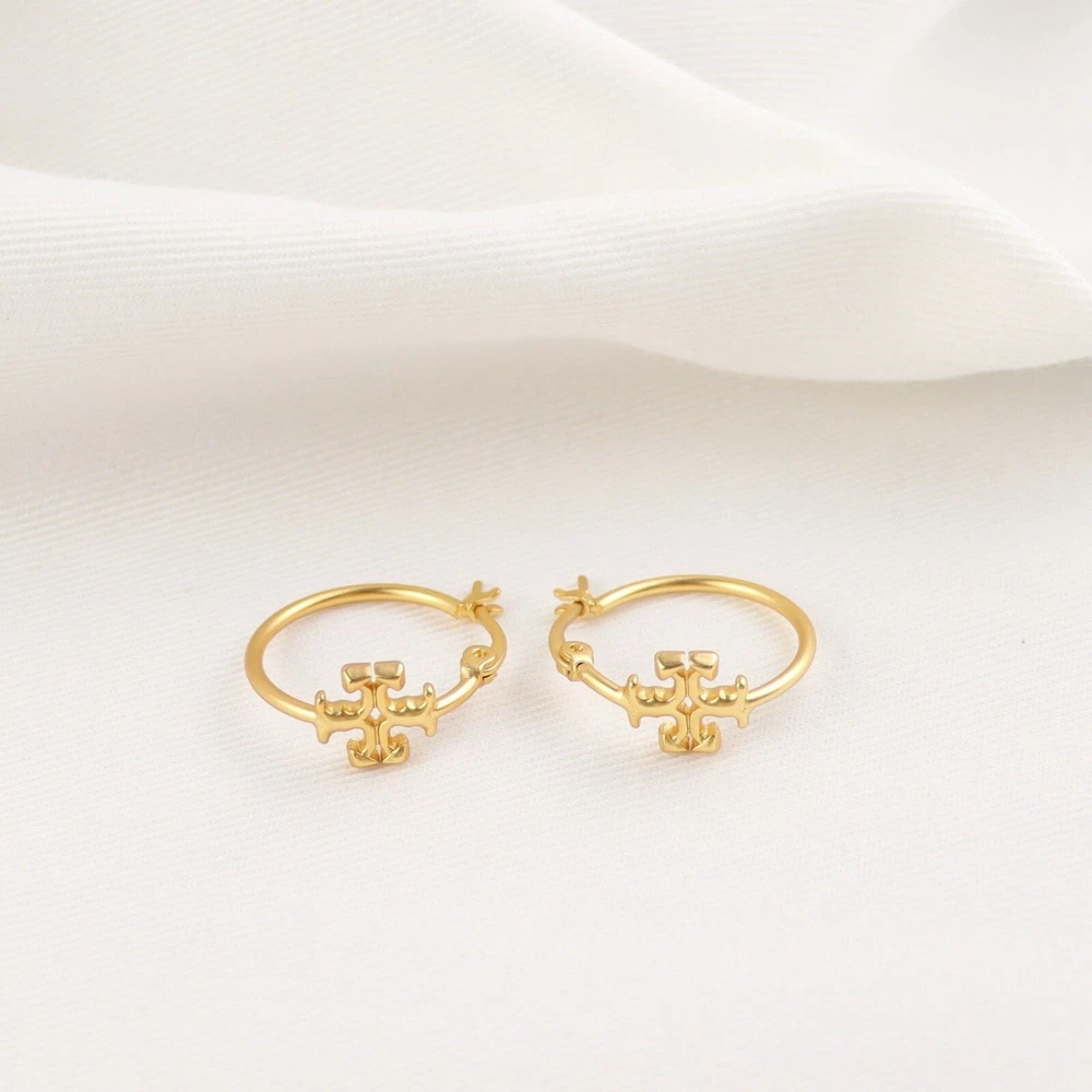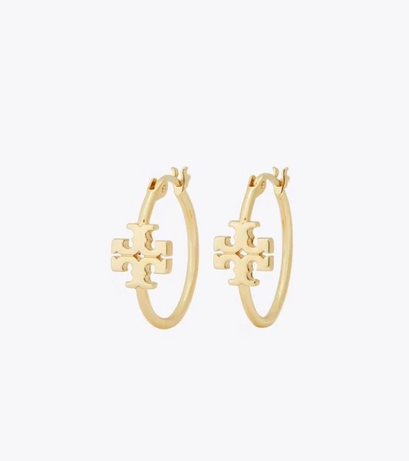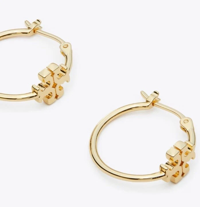 Tory Burch Double T Logo Mate Gold Color Kira Small Size Hoop Simple Elegant