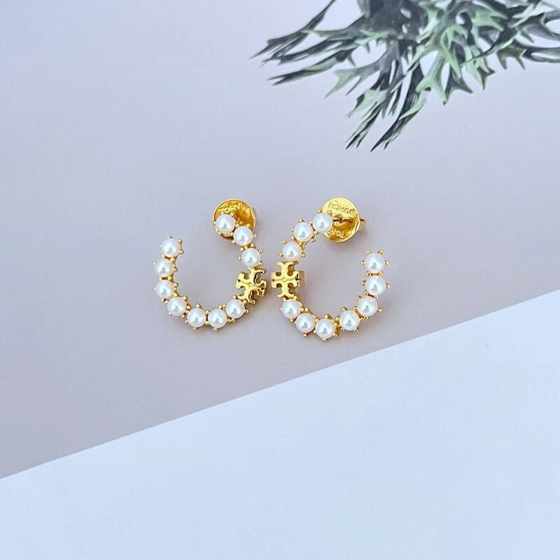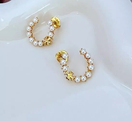 Tory Burch Pearl Double T Logo Perfect Design Lady Nice Earring