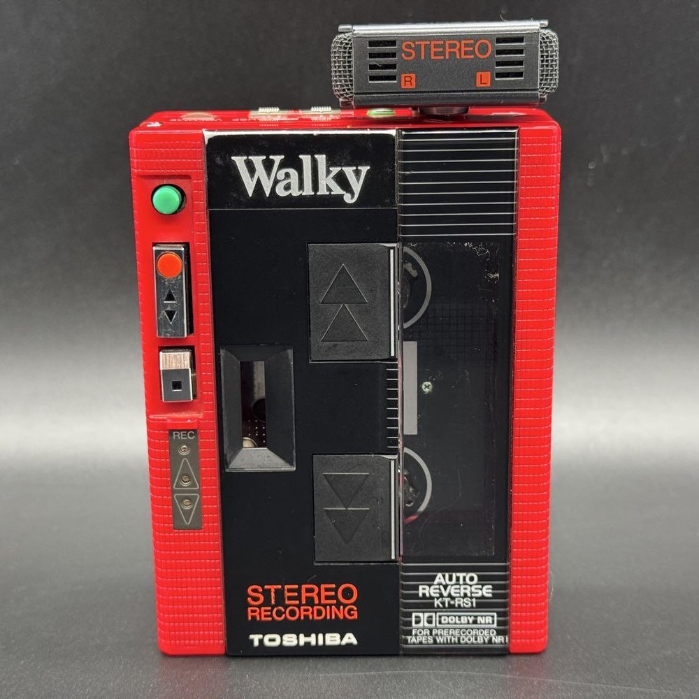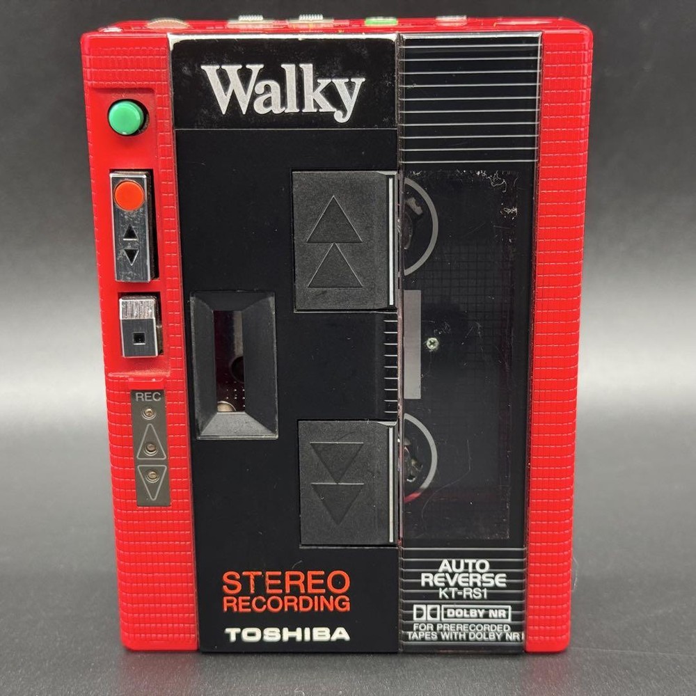 Thank you for your interest. This is a TOSHIBA KT-RS1 Walky portable cassette player. It features a stereo microphone. The product is in junk condition. Power has been checked (using AA batteries). There is motor noise, but cassette tapes could not be played. Other functions have not been verified. The item shown in the pictures is everything included. Please carefully review the photos before purchasing. Consider this item for repairs or parts. If you have any questions, feel free to ask. There are also other portable audio items listed. Immediate purchase is welcome. Thank you. I promise fast shipping via FedEx or DHL as soon as possible! Import duties, taxes and charges are not included in the item price or shipping charges. These charges are the buyer’s responsibility. These charges are normally collected by the delivering freight (shipping) company or when you pick the item up - do not confuse them for additional shipping charges.